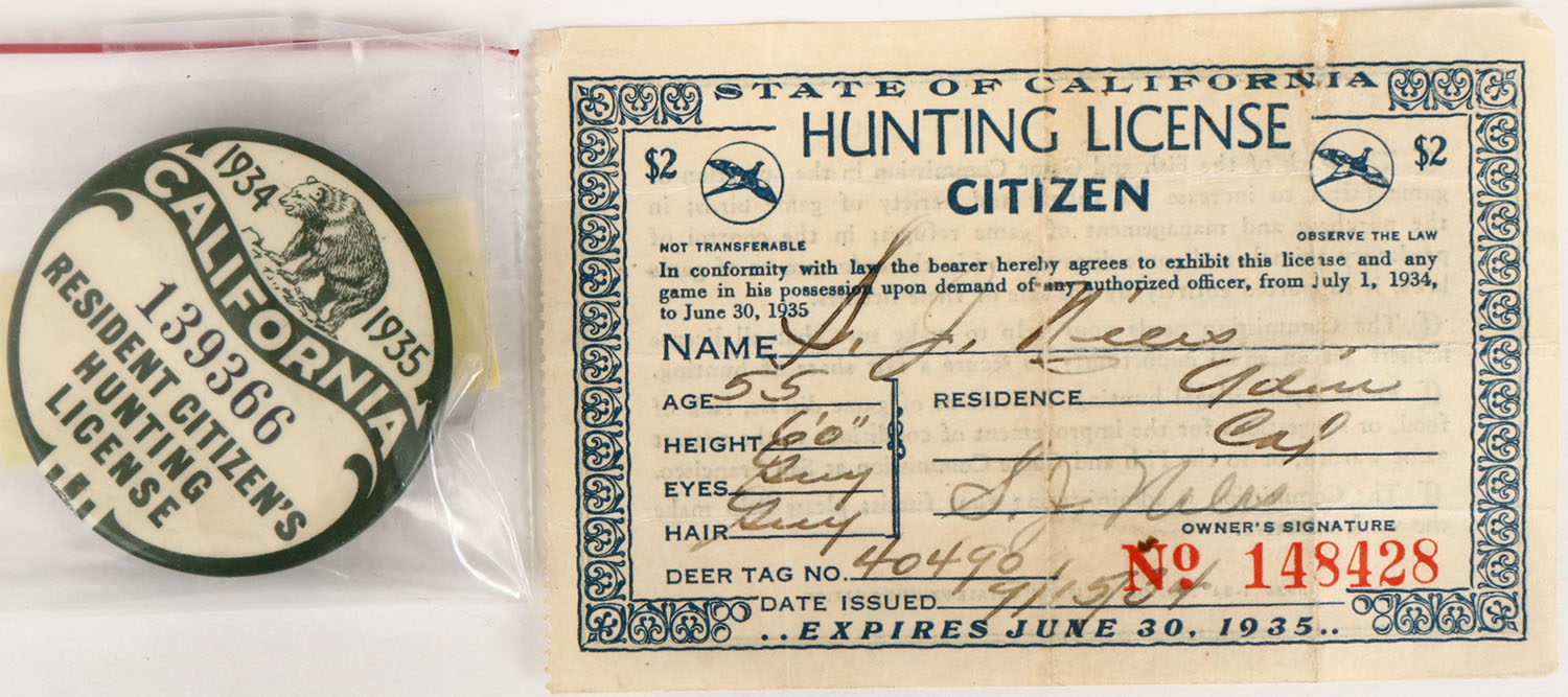 Lot of 2 RARE and EARLY California Hunting License, 1935. Grade: Excellent - Value: 10 to 50