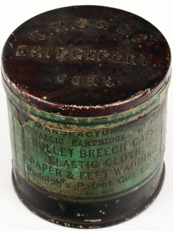Early UMC percussion caps tin, 250 count, Full, has some age soiling. Grade: Very Good + - Value: 16 to 200