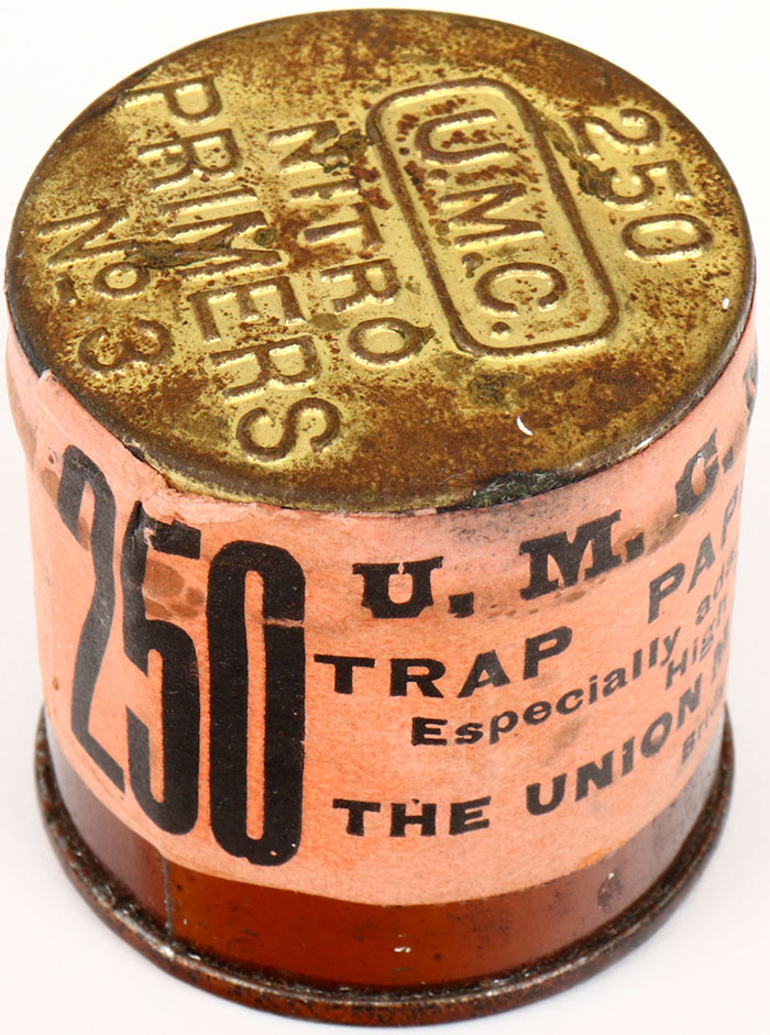 Early UMC primers tin, 250 count, Full & Sealed, has some age soiling. Grade: Very Good ++ - Value: 20 to 80