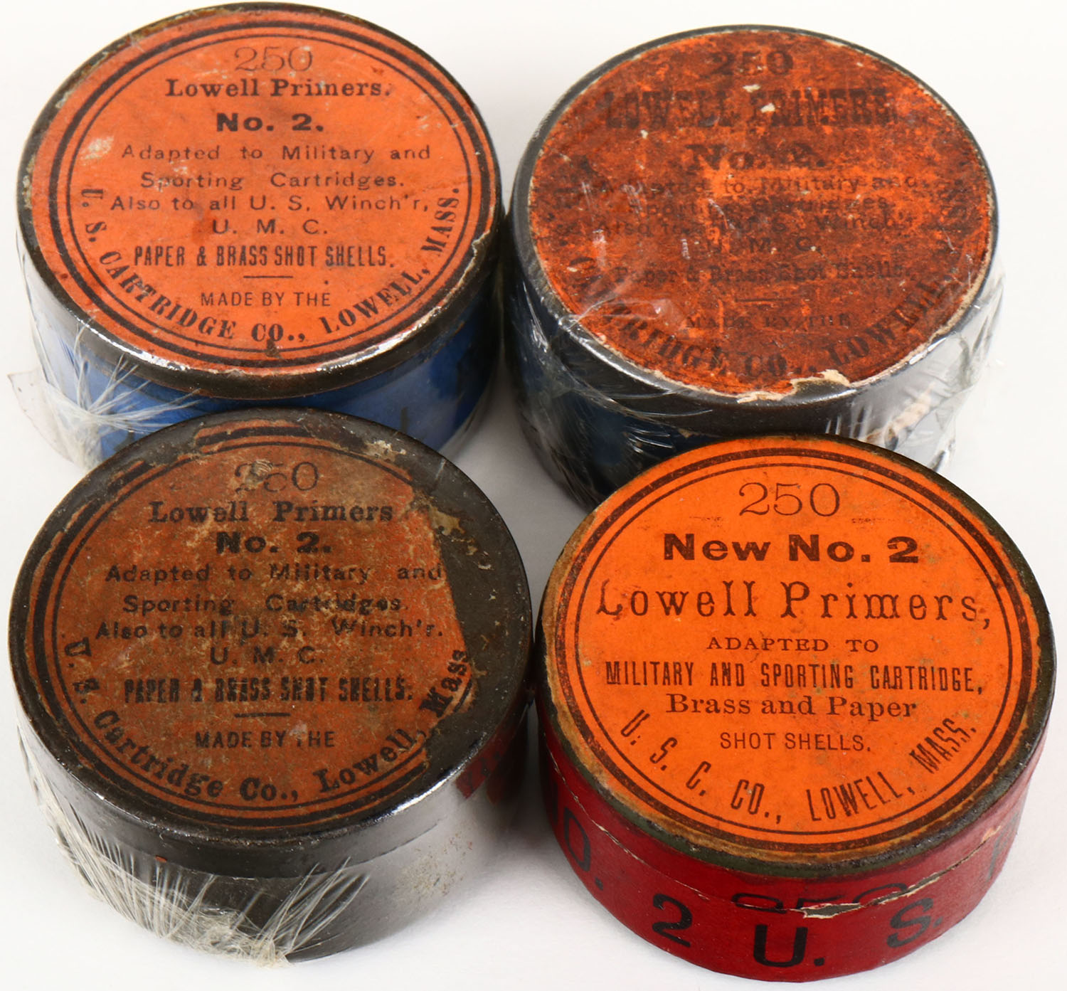 Lot of 4 US Lowell Primers, all partial. Grade: Very Good ++ - Value: 16 to 60