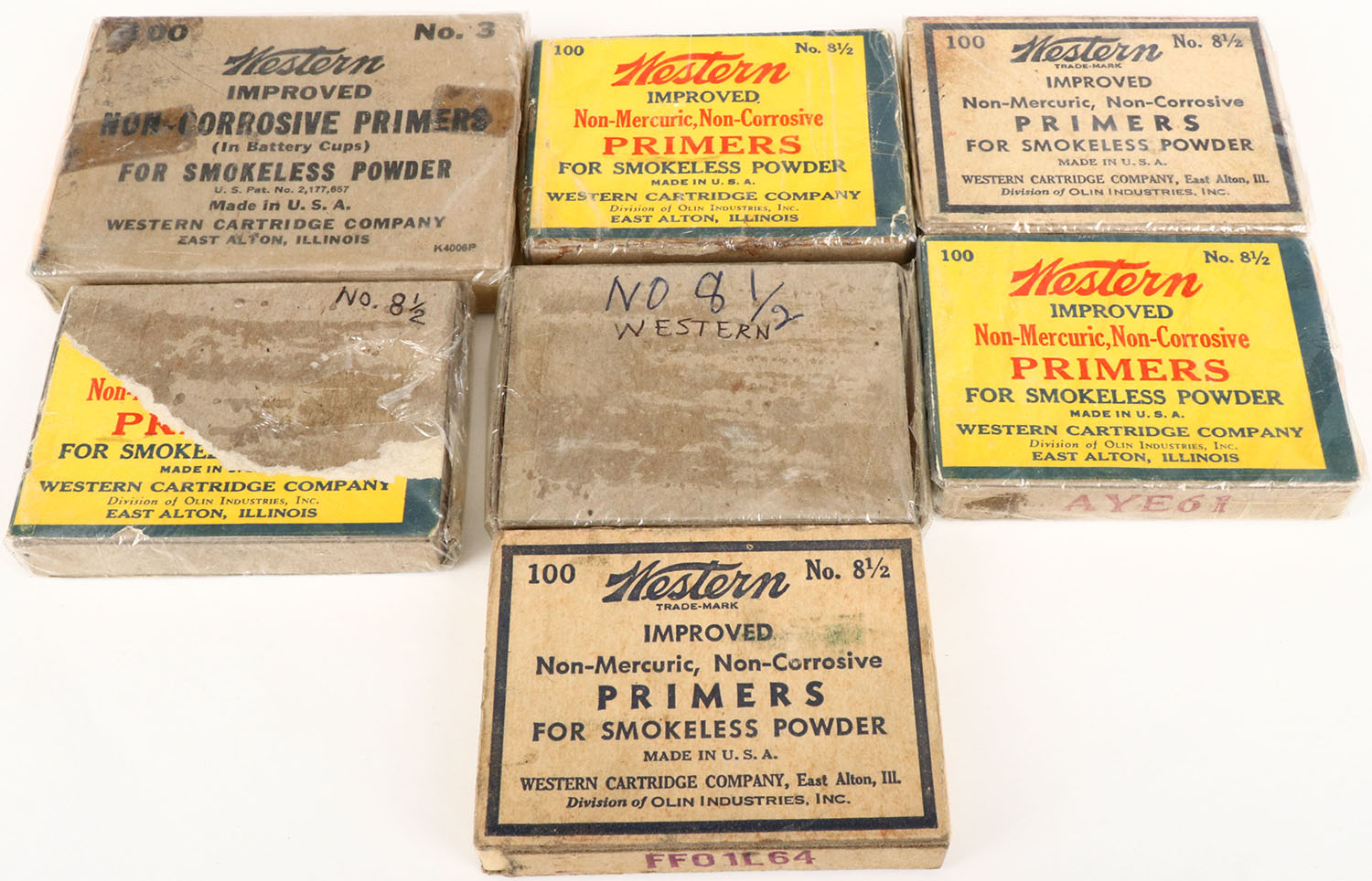 Lot of 7 Winchester primer boxes, all Partial. Grade: Very Good - Value: 2 to 50