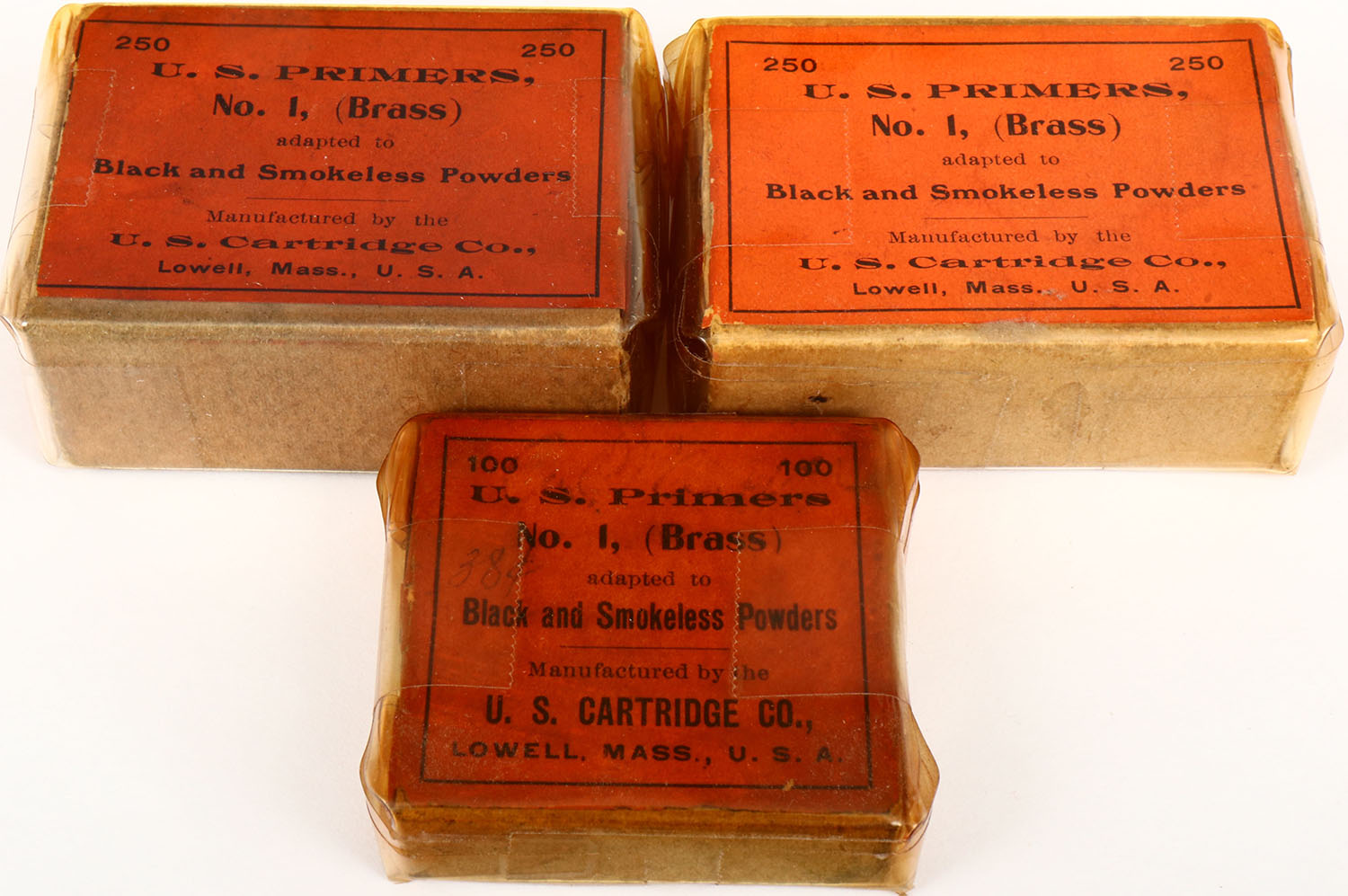 Lot of 2 US Primer box, 250 count, Partial, some age soiling. Grade: Very Good + - Value: 6 to 60