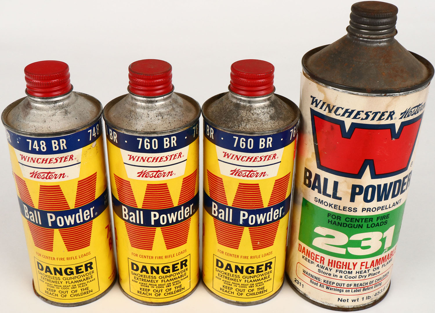 Lot of 4 Win-Western Ball Powder tin, all nearly Full, bright and clean., Grade: Excellent - Value: 20 to 80