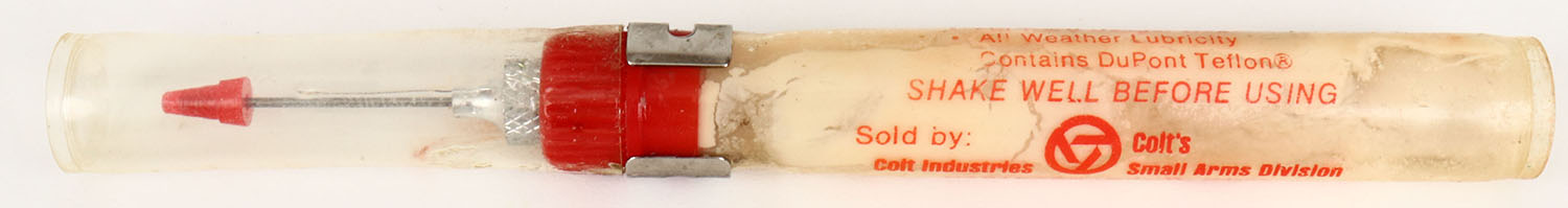 Colt lub. oil tube, partial, age soiling. Grade: Very Good ++ - Value: 10 to 50