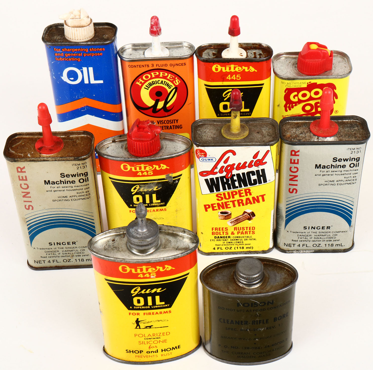 Very large lot of oil tins, various manf, some full some Empty. Grade: Excellent - Value: 10 to 60