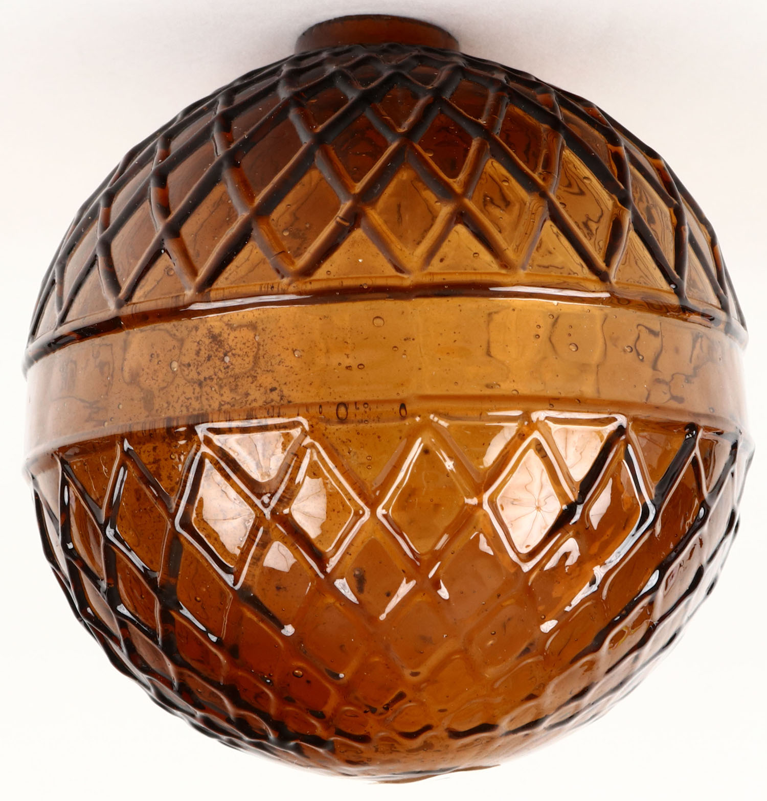 RARE! Glass Target Ball with unique color ''Apricot-Puce'', diamond pattern, 2 5/8'' dia., neck looks ground down, circa 1880-1900. Grade: Excellent ++ - Value: 200 to 1000