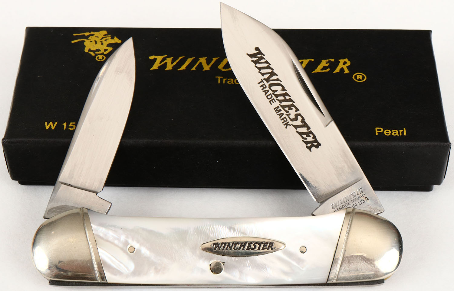 Winchester folding knife, PEARL handles, in original box, W 15 28200. Grade: MINT - Value: 50 to 200