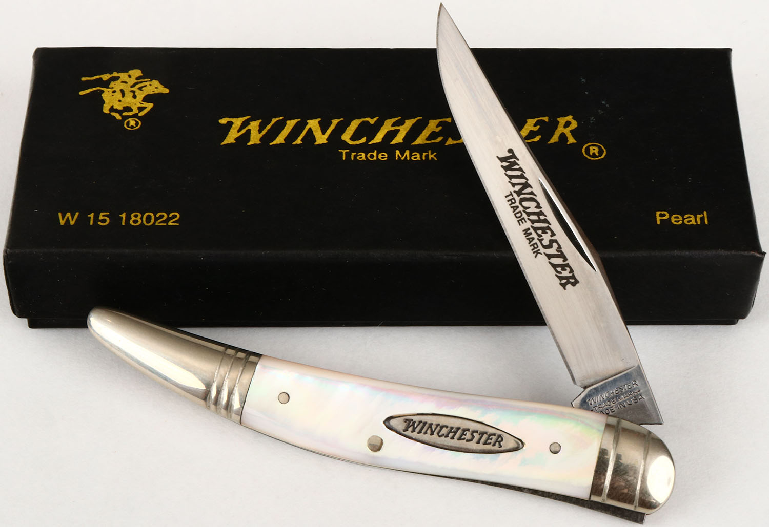 Winchester folding knife, PEARL handles, in original box, W 15 18022. Grade: MINT - Value: 50 to 200