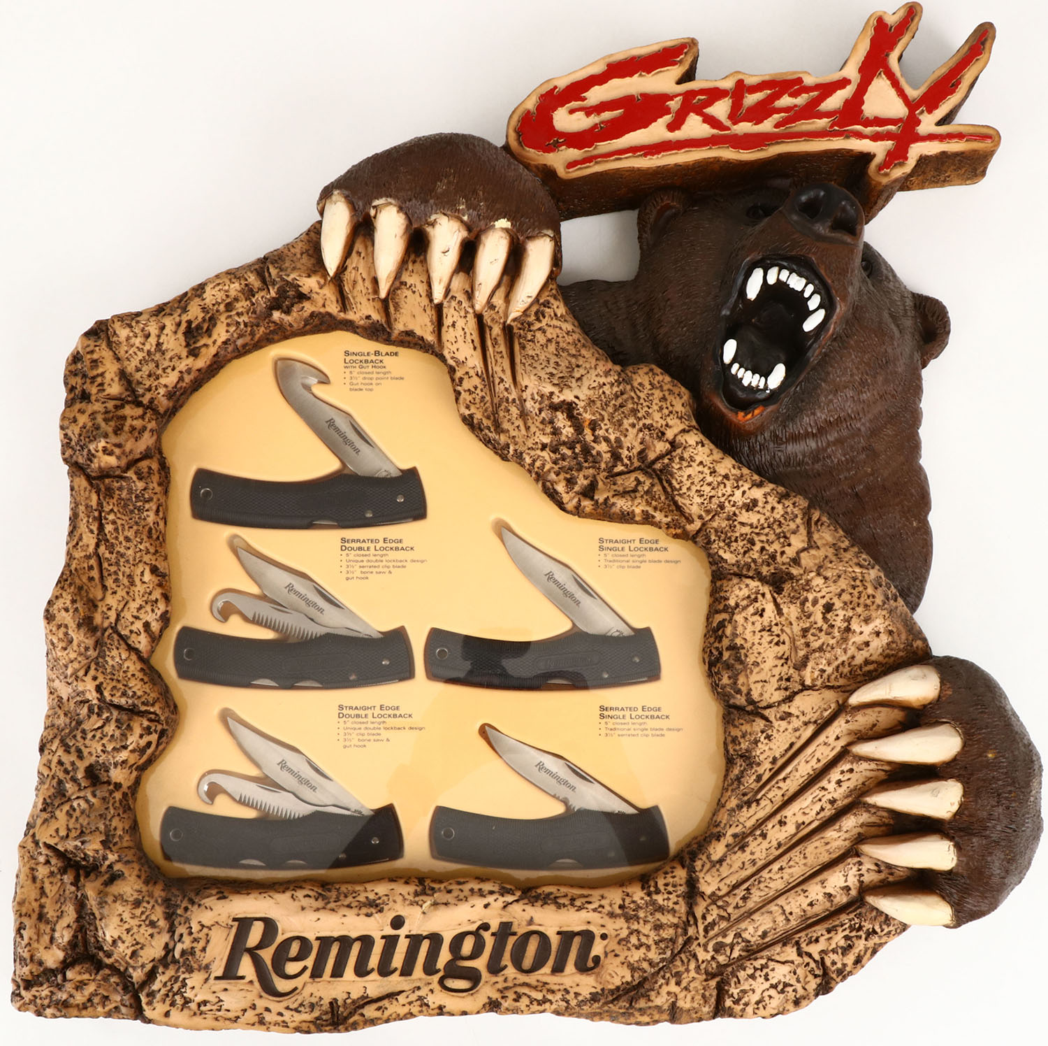 Remington Grizzly knife set, Lot of 5 folding knives in display case, all knives are very bright and clean, case is very nice with some very minor nicks and dings. Grade: Excellent + - Value: 100 to 400