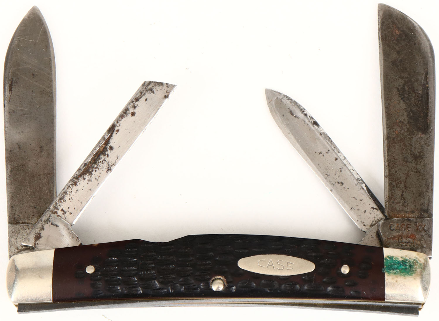 Case knife, 6488 marked on blade, celluloid handles, 4 blades, 2 1/4'' blade, blade and handle has age soiling, small chip to handle. Grade: Very Good - Value: 10 to 50