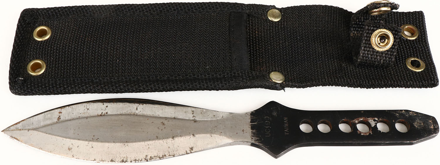 Throwing knife, made in Taiwan, UC190, has some rust, has sheath. Grade: Very Good - Value: 2 to 40