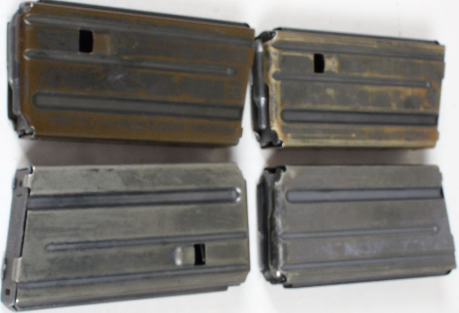 Lot of 4 AR mags., 2 Colt and 2 Simmons Prec. Prod. Inc., shows some wear. Grade: Very Good - Value: 20 to 100