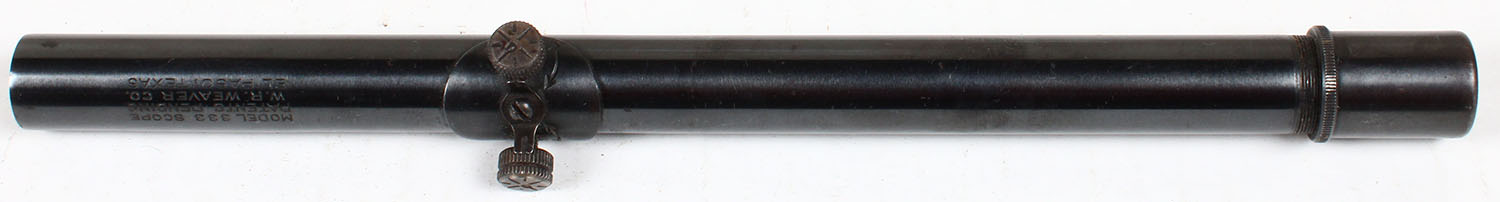 RARE! Weaver 3/4'' Rifle scope, Model 333, 3 power, fine crosshair reticle, 2'' eye relief. Grad: Excellent - Value: 30 to 90