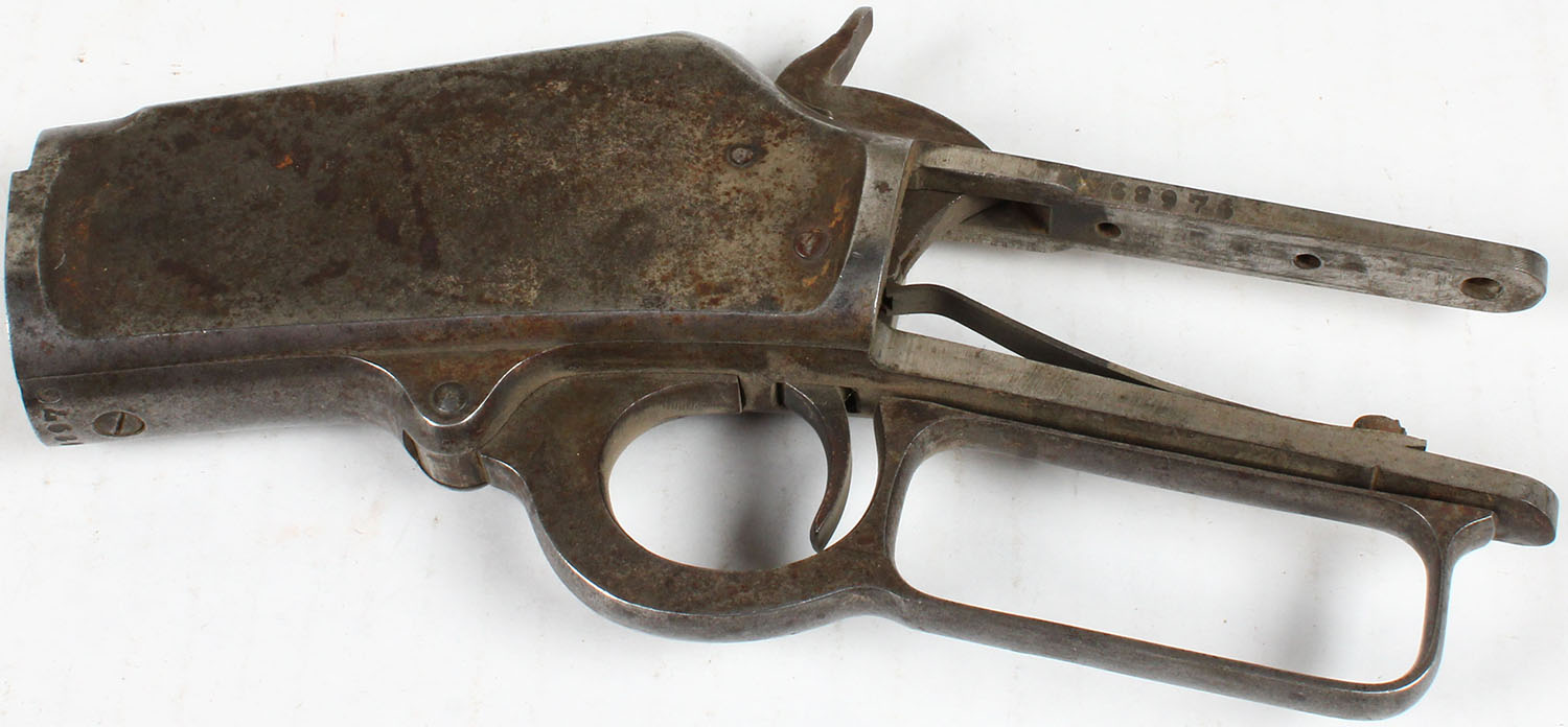 Gun Receiver, Marlin, Model '94, CAL: 30-30. Action appears to function properly. Metal finish has toned to metal gray & brown patina, with spotting throughout. Grade: Good++ - Value: 20 to 400