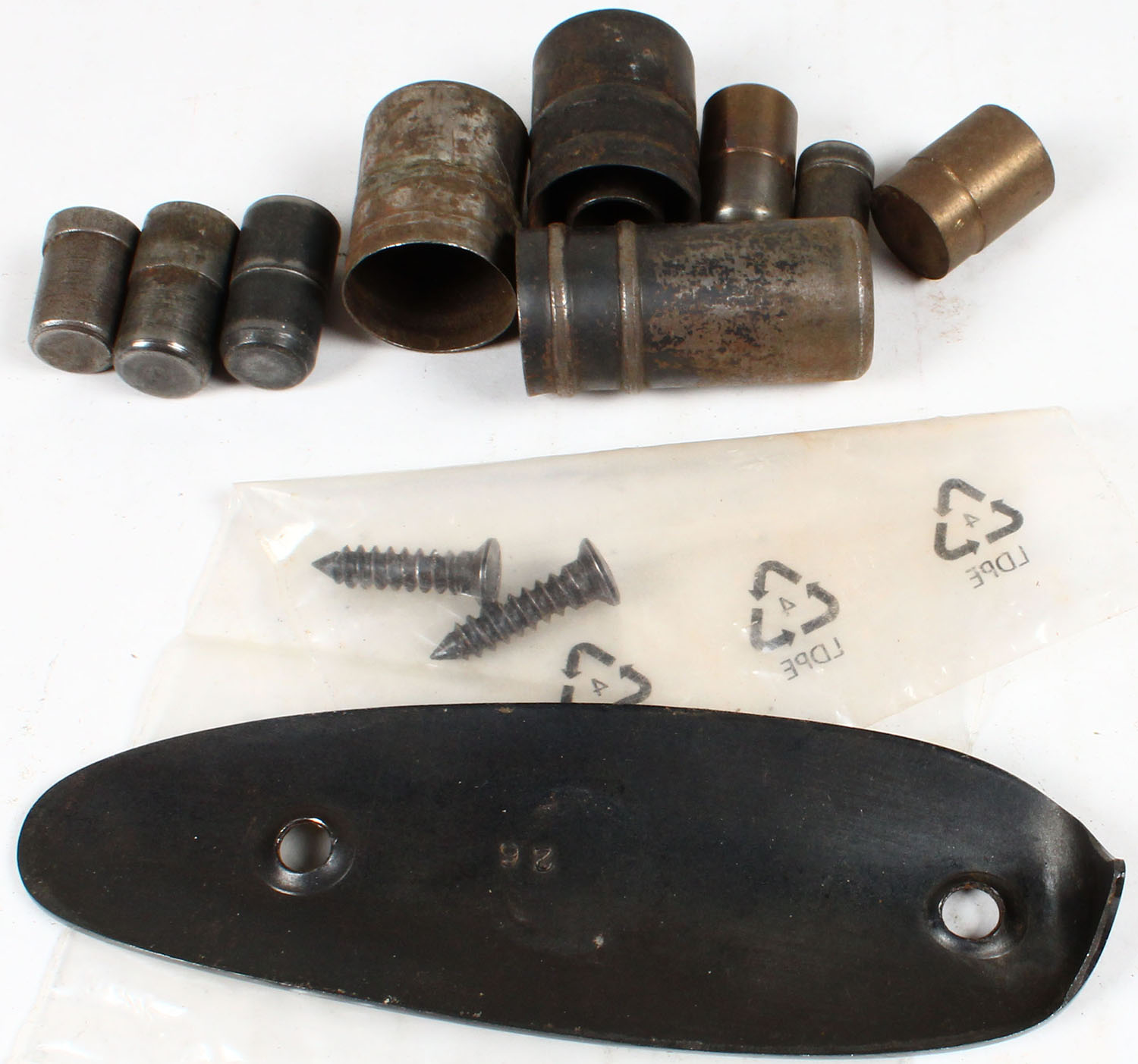 10 Vintage Magazine plugs tube and 1 Upper widows Peak steek Shotgun Butt plate & screws. Grade: Excellent - Value: 20 to 100