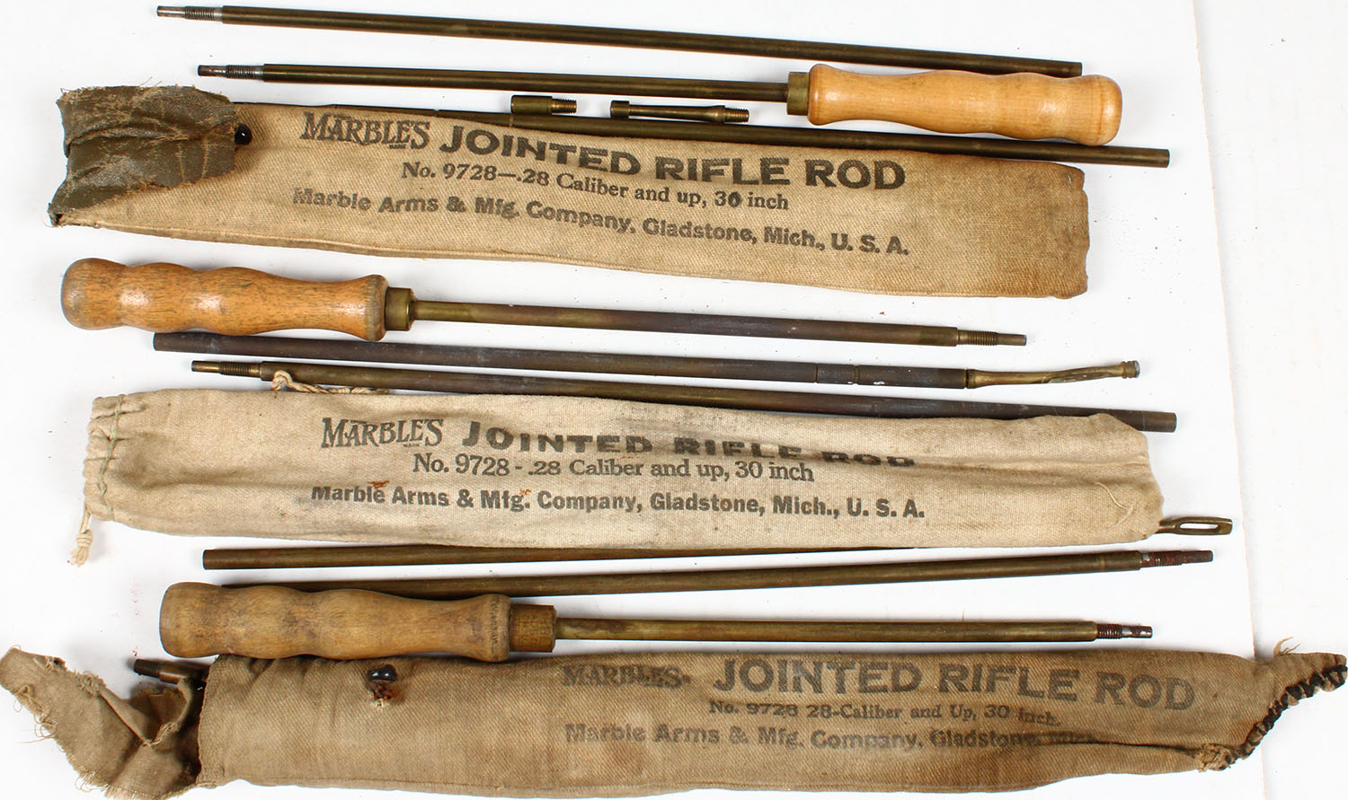 Lot of 3 Marbles Jointed Rifle rod in cloth bag. Grade: Very Good ++ - Value: 10 to 50