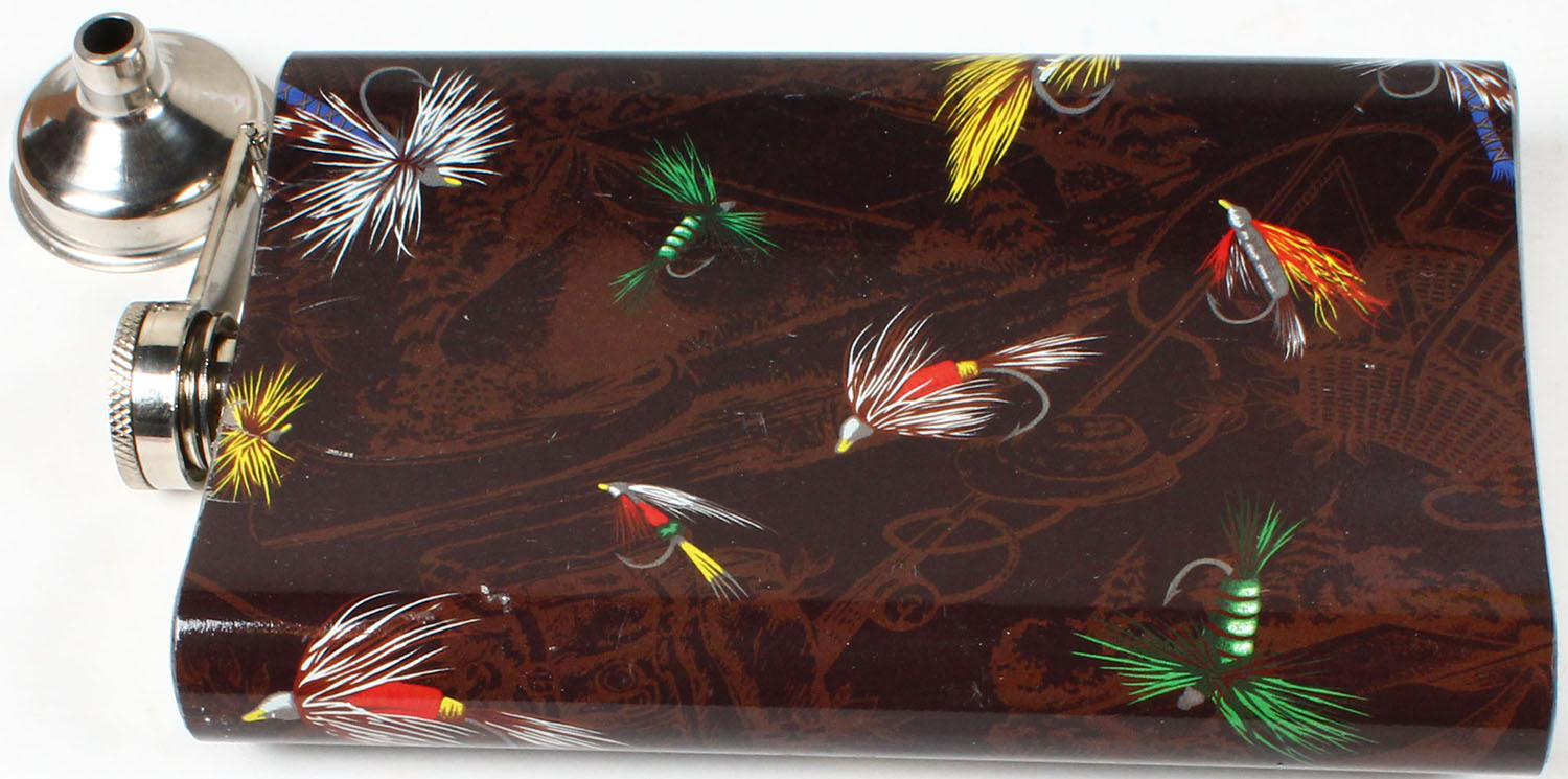 Drinking Flask with images of fly's. Grade: Excellent - Value: 4 to 50