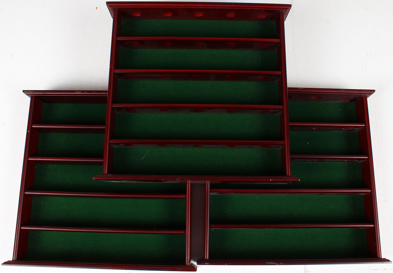 Lot of 3 Small wood shelves with green felt back ground, 14'' x 13'' x 3''. Grade: Excellent ++ - Value: 20 to 200
