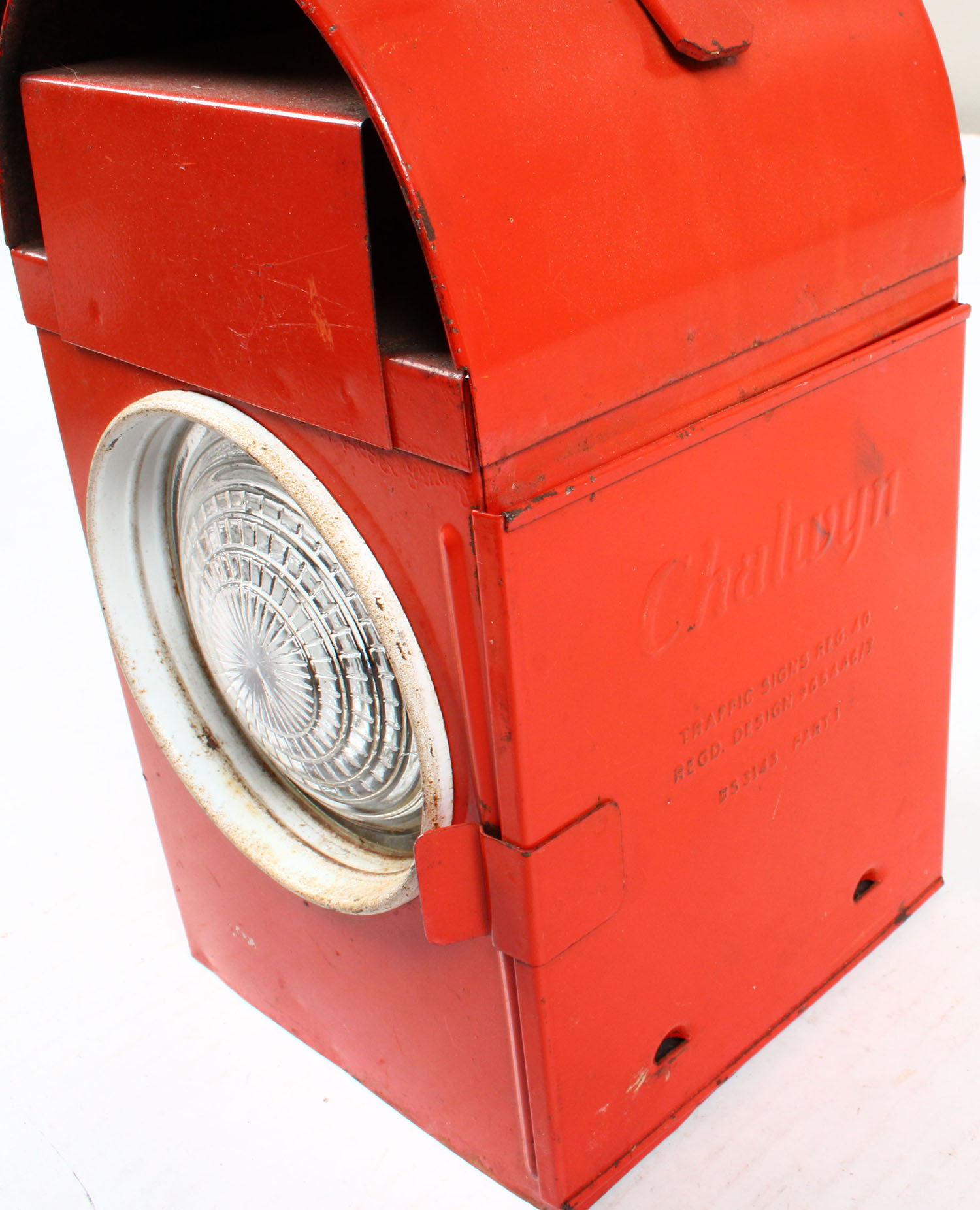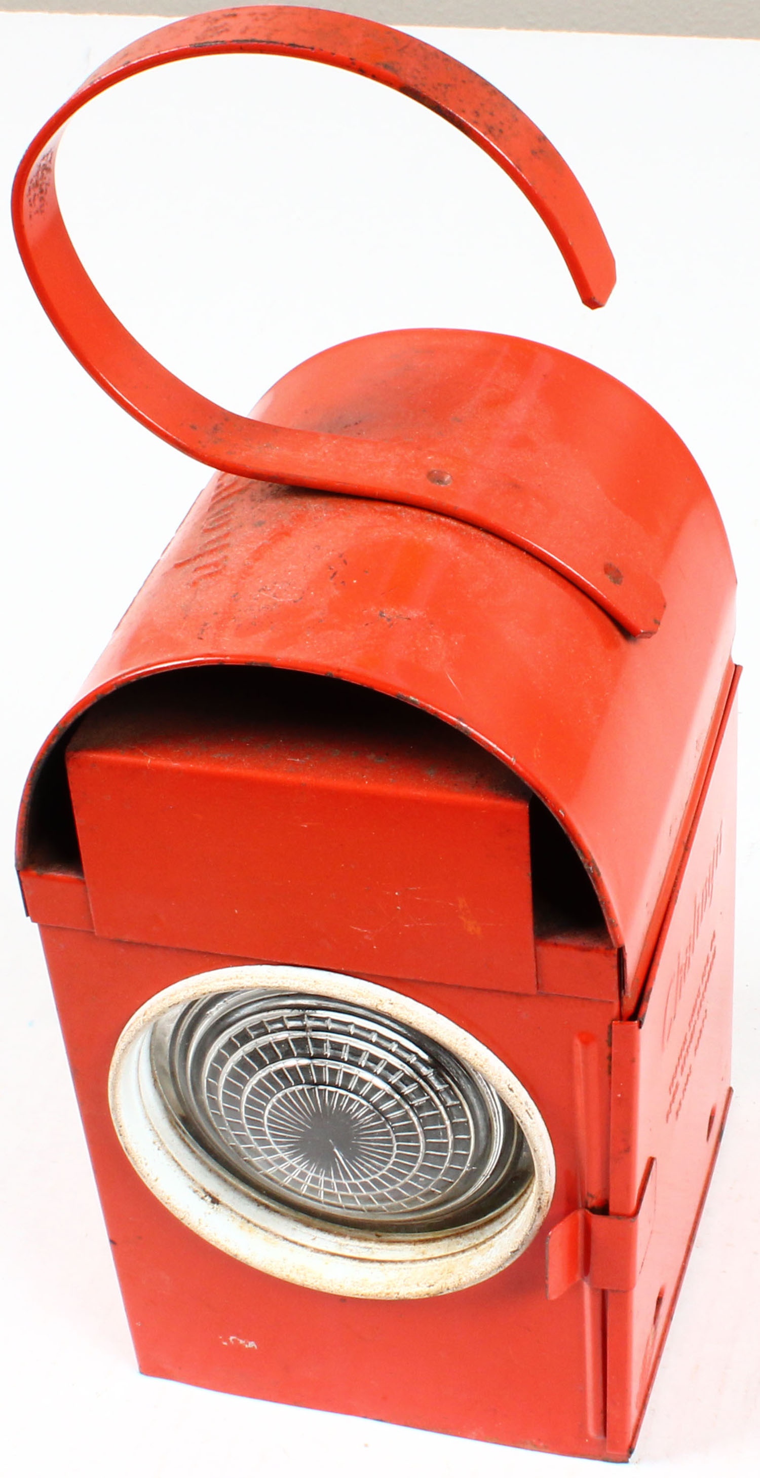 Chalwyn oil lamp, red and white with glass for light. Grade: Excellent - Value: 2 to 90