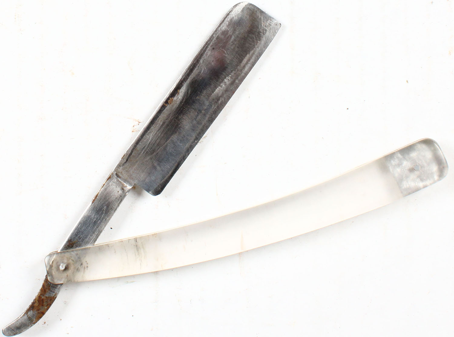 Unmarked straight razor with clear handles. Grade: Very Good - Value: 10 to 50