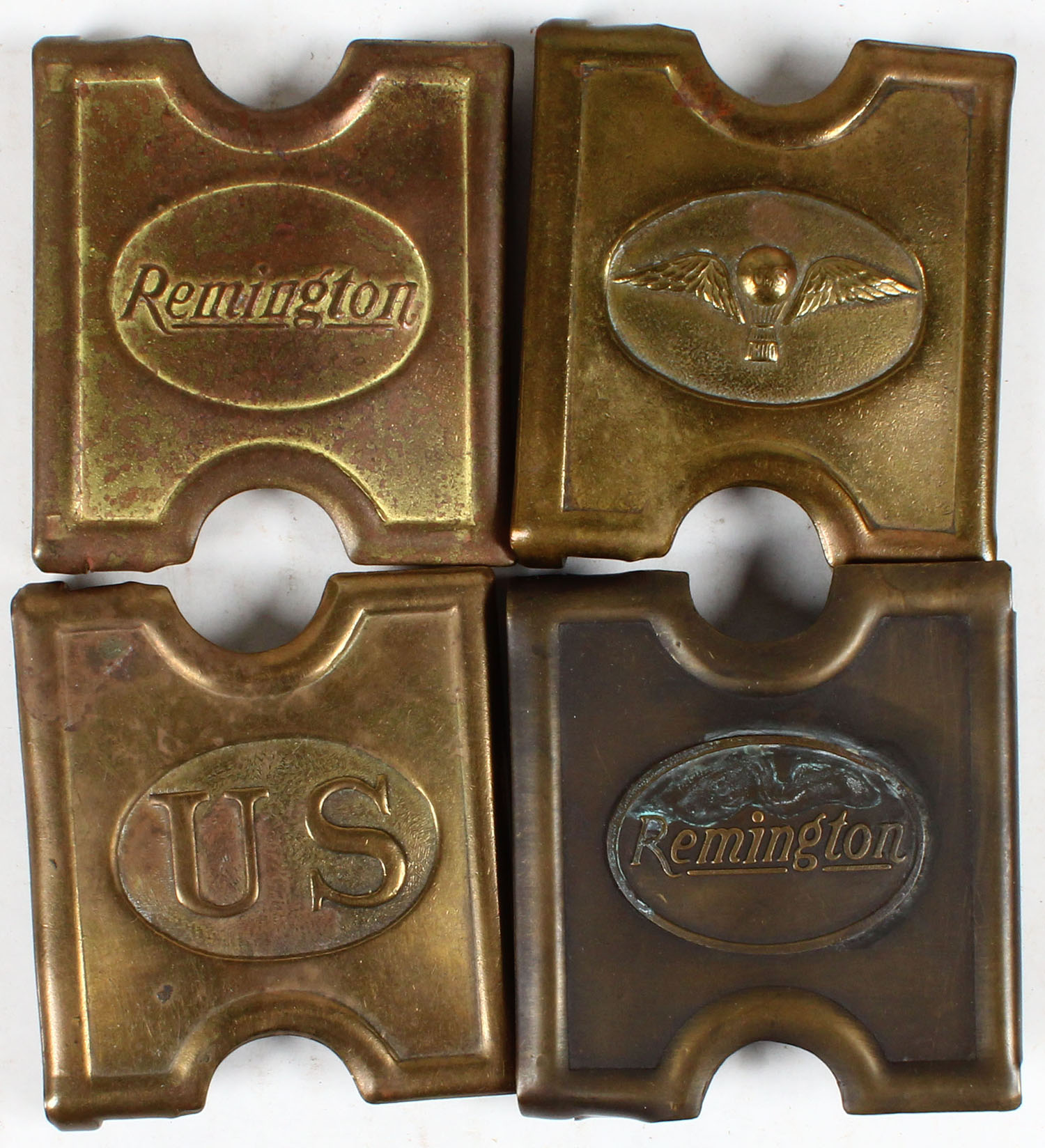Lot of 4 Repo brass Remington belt buckles. Grade: Excellent - Value: 10 to 60