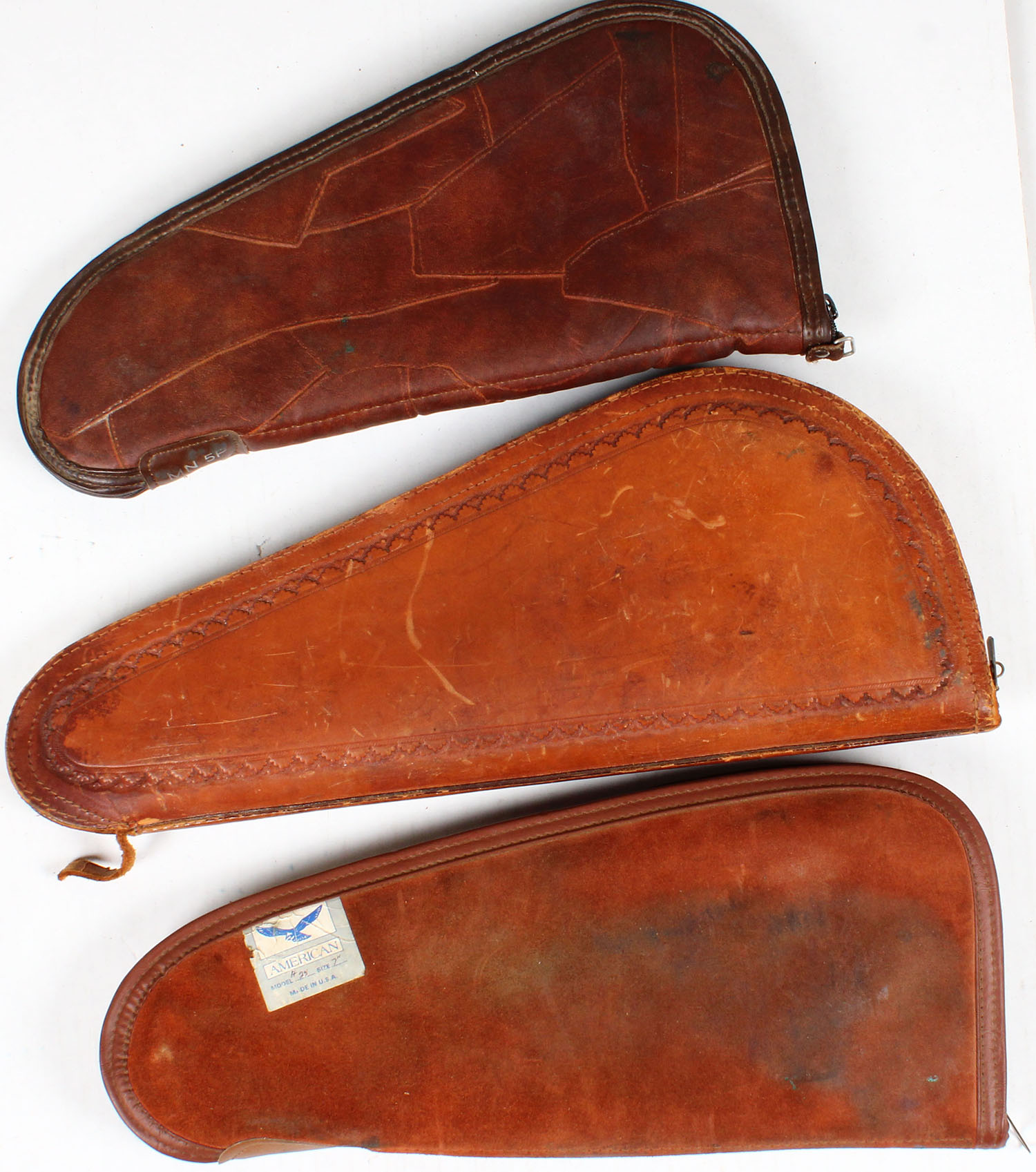 Lot of 3 leather pistol cases. Grade: Very Good ++ - Value: 6 to 40