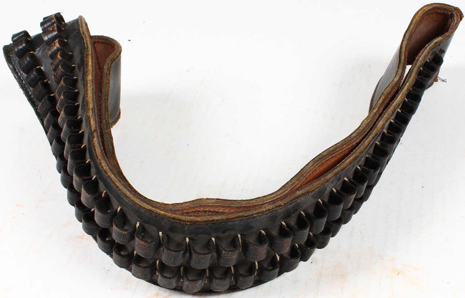Leather ammo belt, unmarked, has soiling. Grade: Excellent - Value: 6 to 40