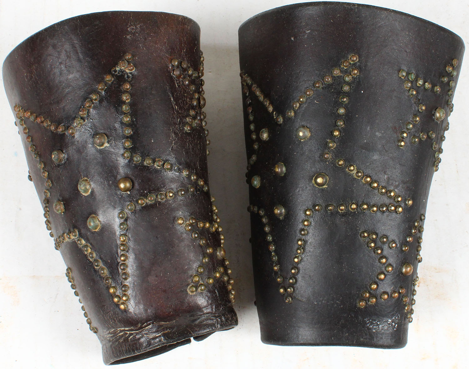 Nice 19th century cowboy leather cuffs covered in brass star designs, nice old items, about 1880, Grade: Very Good - Value: 100 to 200