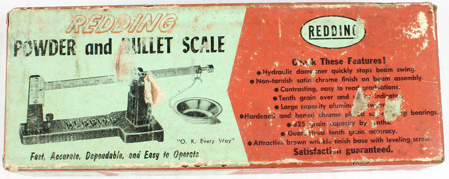 Redding Powder and bullet scale in orignal box, Full & Complete, box has scuffing. Grade: Very Good ++ - Value: 10 to 60
