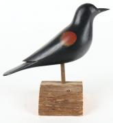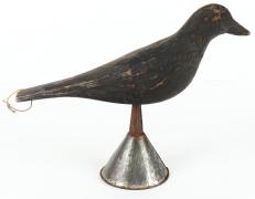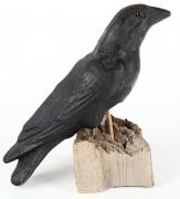 Crow decoy by unknown maker on metaql oil spout stand, no eyes, ... |