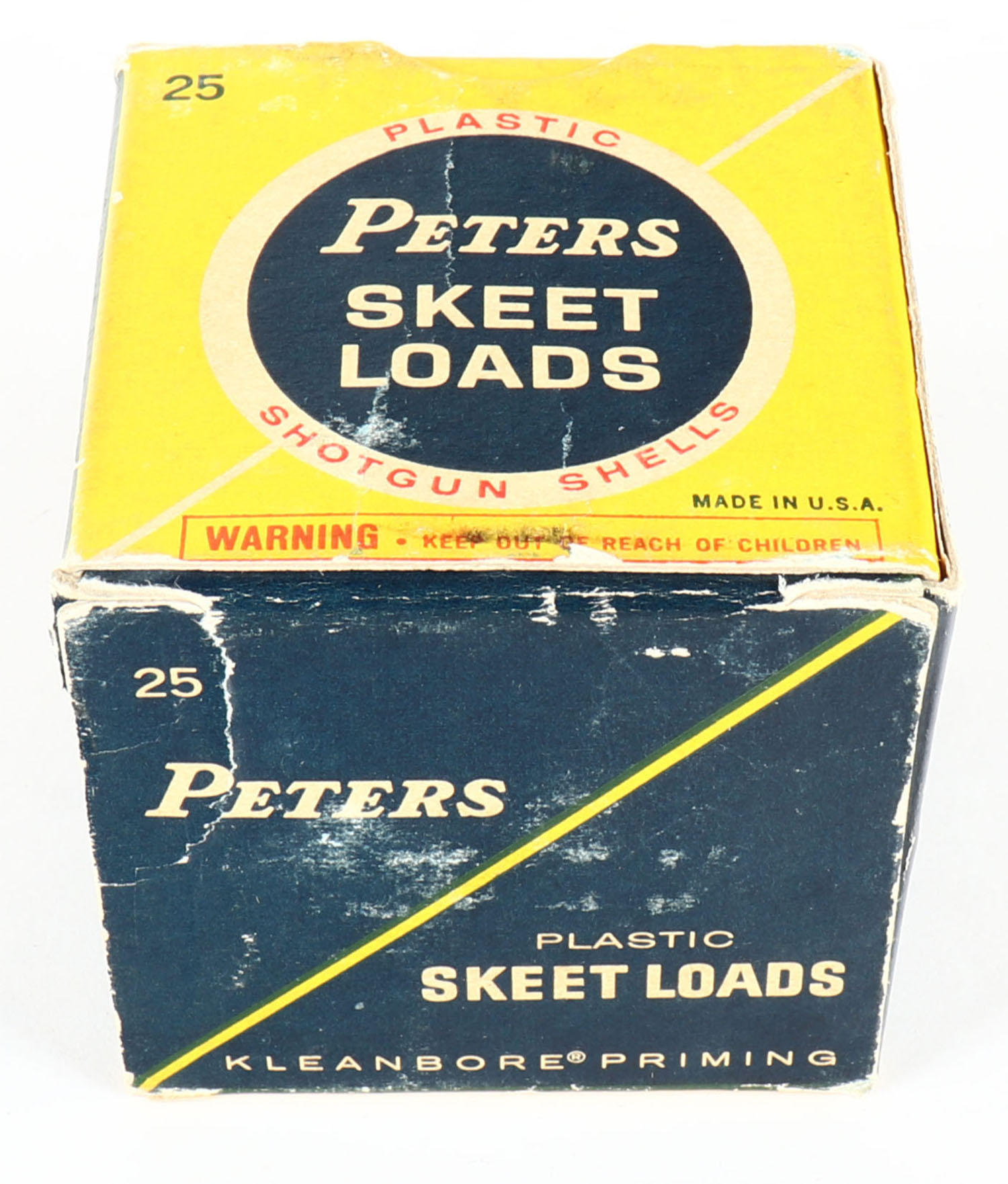 Peter's Cart. Div., 410ga., 2 1/2'', 1pc., Full, Shot size 9 Skeet Load, multi-colored box, box has some edge wear, plastic shells are excellent. Grade: Very Good - Value: 10 to 30