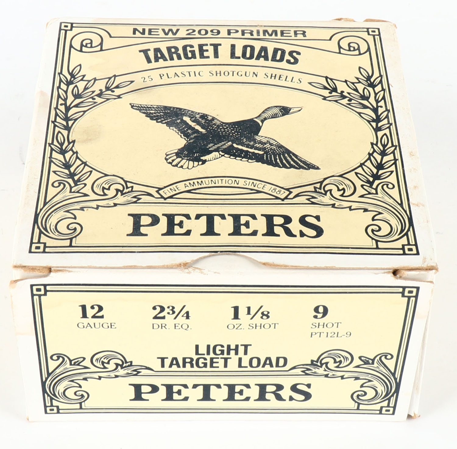 Peters Cart. Div., Light Target Loads, 12ga., 2 3/4'', 1pc., Full, shot size 9, multi colored box, box has great colors, plastic shells are excellent. Grade: Excellent + - Value: 10 to 40