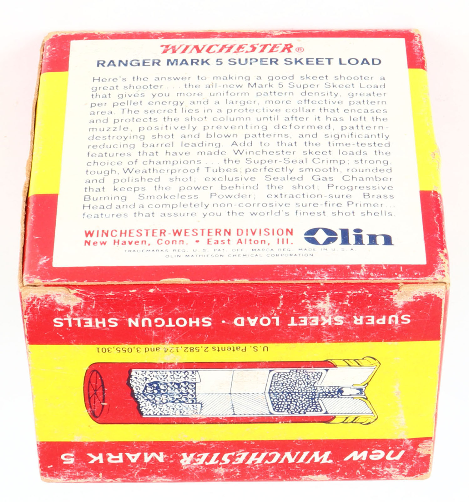 Winchester, Super Speed Mark 5, 20ga., 2 3/4'', 1pc., Full, shot size 9, Super Skeet Load, Yellow, blue & red box, box has edge wear, paper shells are excellent. Grade: Excellent - Value: 10 to 30