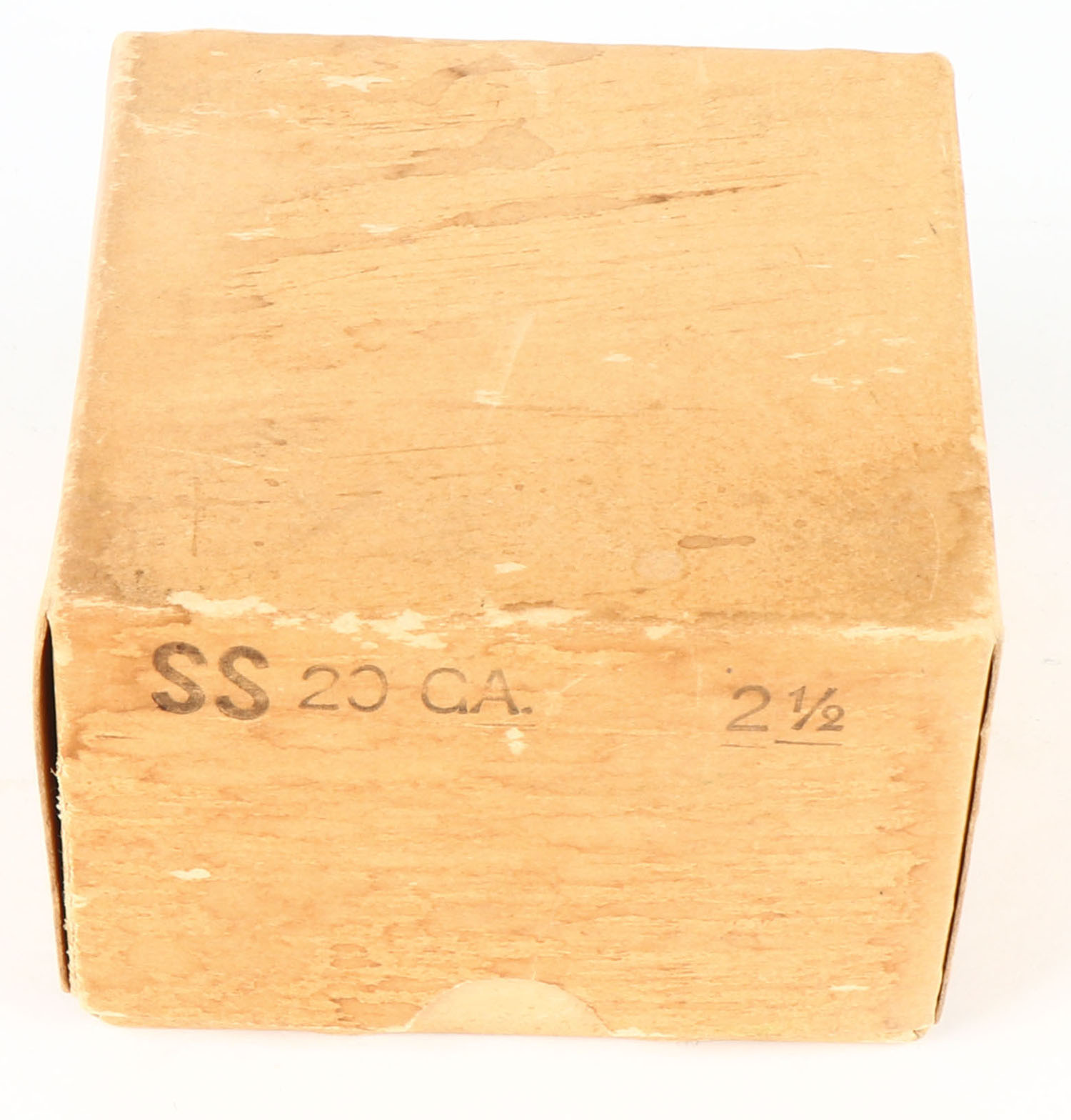 Remington UMC, Shurshot Kleanbore, 20ga., 2pc., 2 1/2'', Full of NPE, shot size Primed Empty, buff box with no label, box is solid, paper shells are minty. Grade: Excellent ++ - Value: 10 to 60