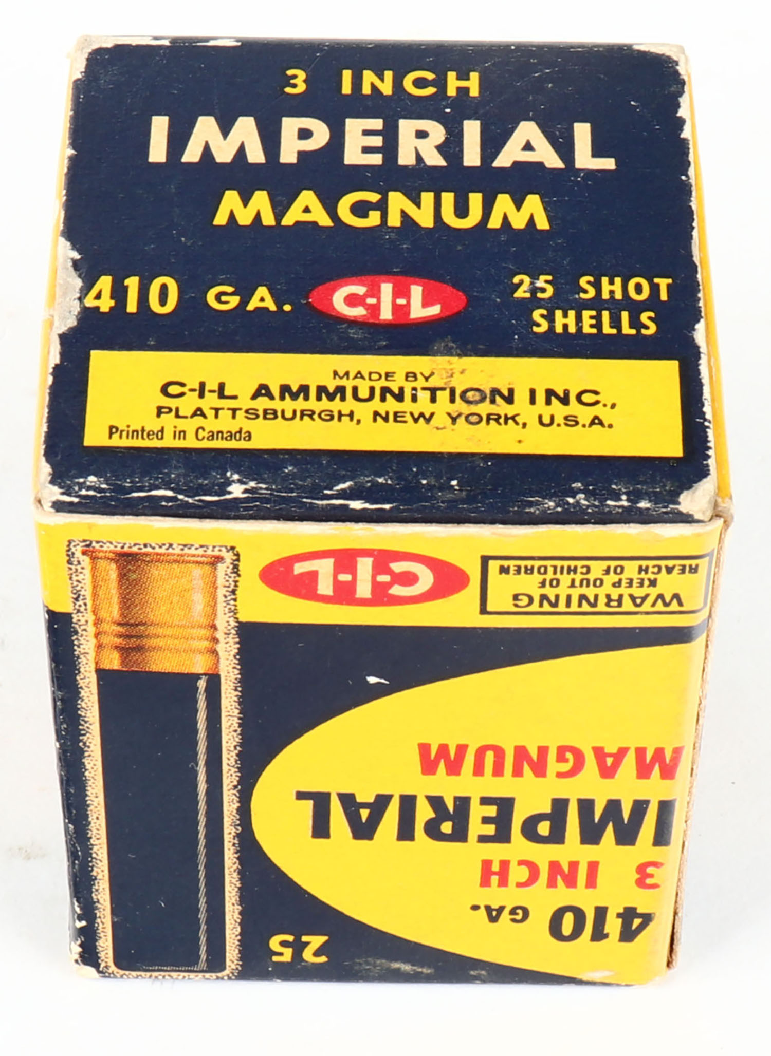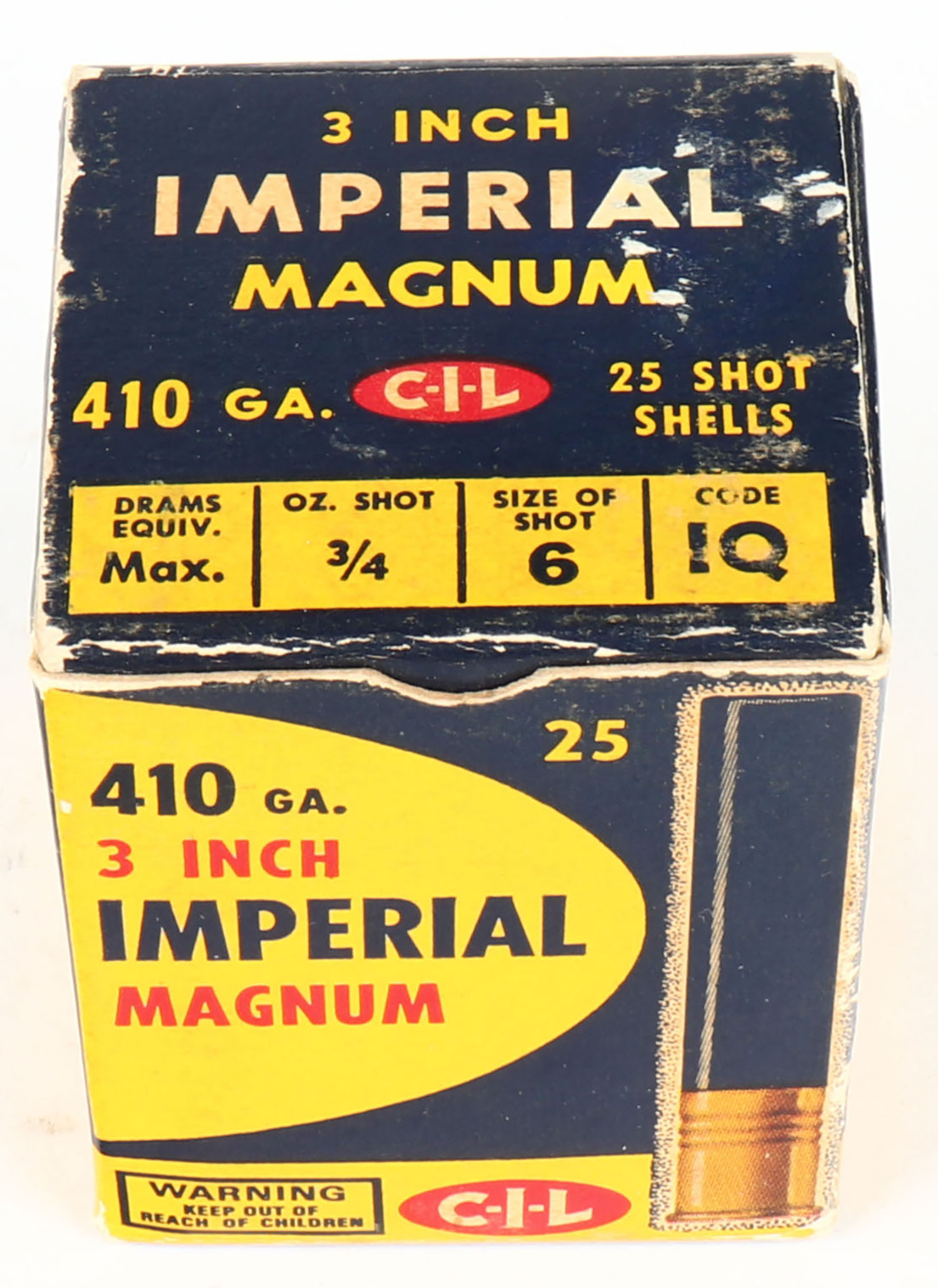 CIL, Imperial Magnum, 410ga., 1pc., 3'', Full, shot size 6, multi-colored box, box is solid with very nice colors, paper shells are excellent. Grade: Very Good ++ - Value: 20 to 60