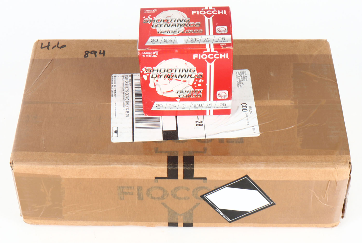 FULL CASE of FIOCCHI, Shooting Dynamics, Target Loads, 20ga., 2 3/4'', shot size 7 1/2, 250rds., has tape wrapped around case. Grade Excellent - Value: 100 to 250