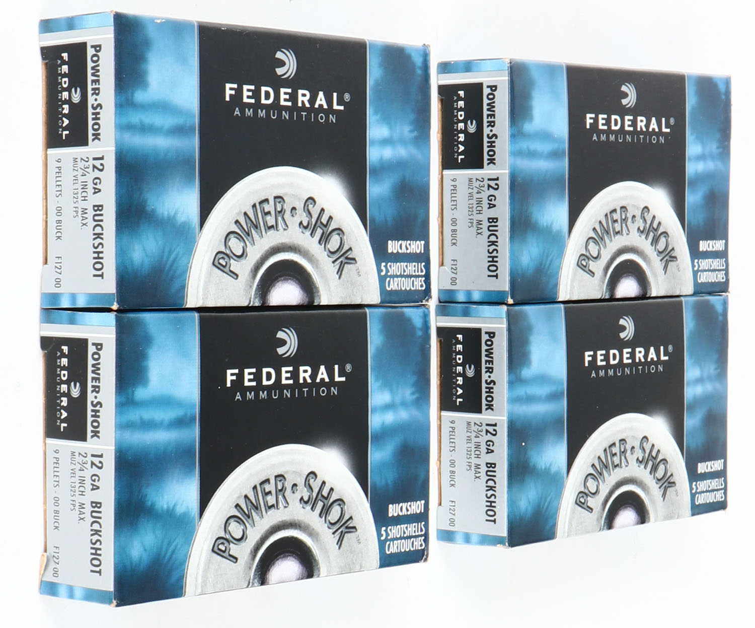 Lot of 4 Federal, 12ga., Appears Full, 2 3/4'', shot size 00 BUCK, multi-colored boxes. Grade: Excellent - Value: 10 to 30