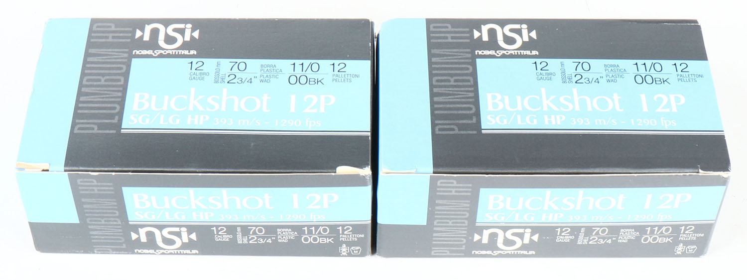 Lot of 2 NSI, 12ga., 1pc., Full, shot size buckshot, multi-colored box. Grade: MINT - Value: 10 to 30