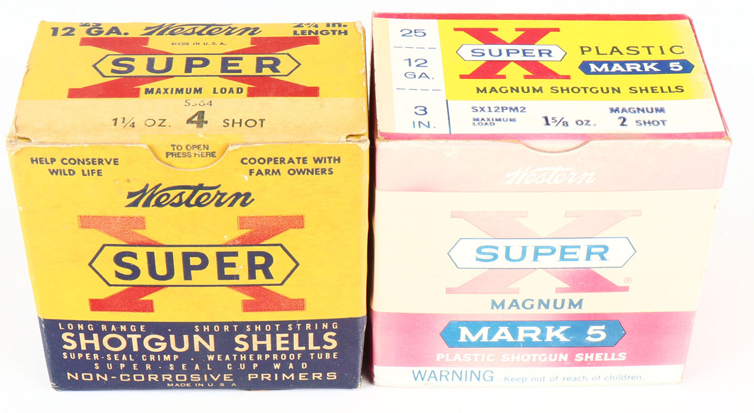 Lot of 2 Western, 12ga., 1pc., Appears Full, shot size 2 & 4, Shotshell boxes. Grade: Very Good ++ - Value: 10 to 30