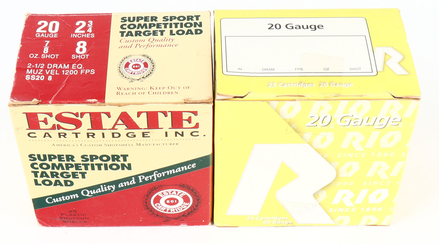 Lot of 2, Mixed Manufacture, 20ga., Appears Full, shot size 8, Shotshell boxes. Grade: Very Good - Value: 10 to 30