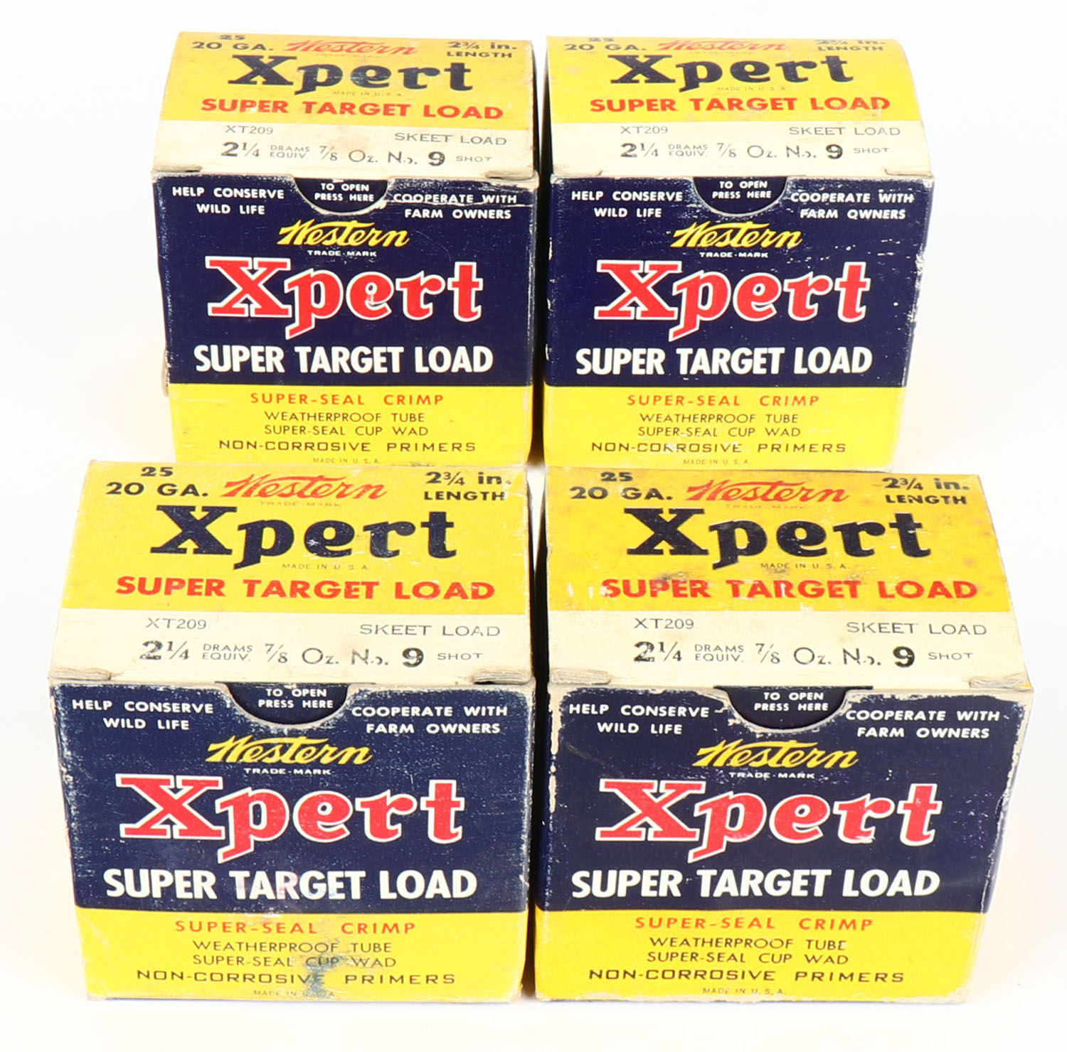 Lot of 4 Western, 20ga., Appears Full, shot size 9 Skeet Load, Shotshell Boxes. Grade: Very Good - Value: 20 to 60