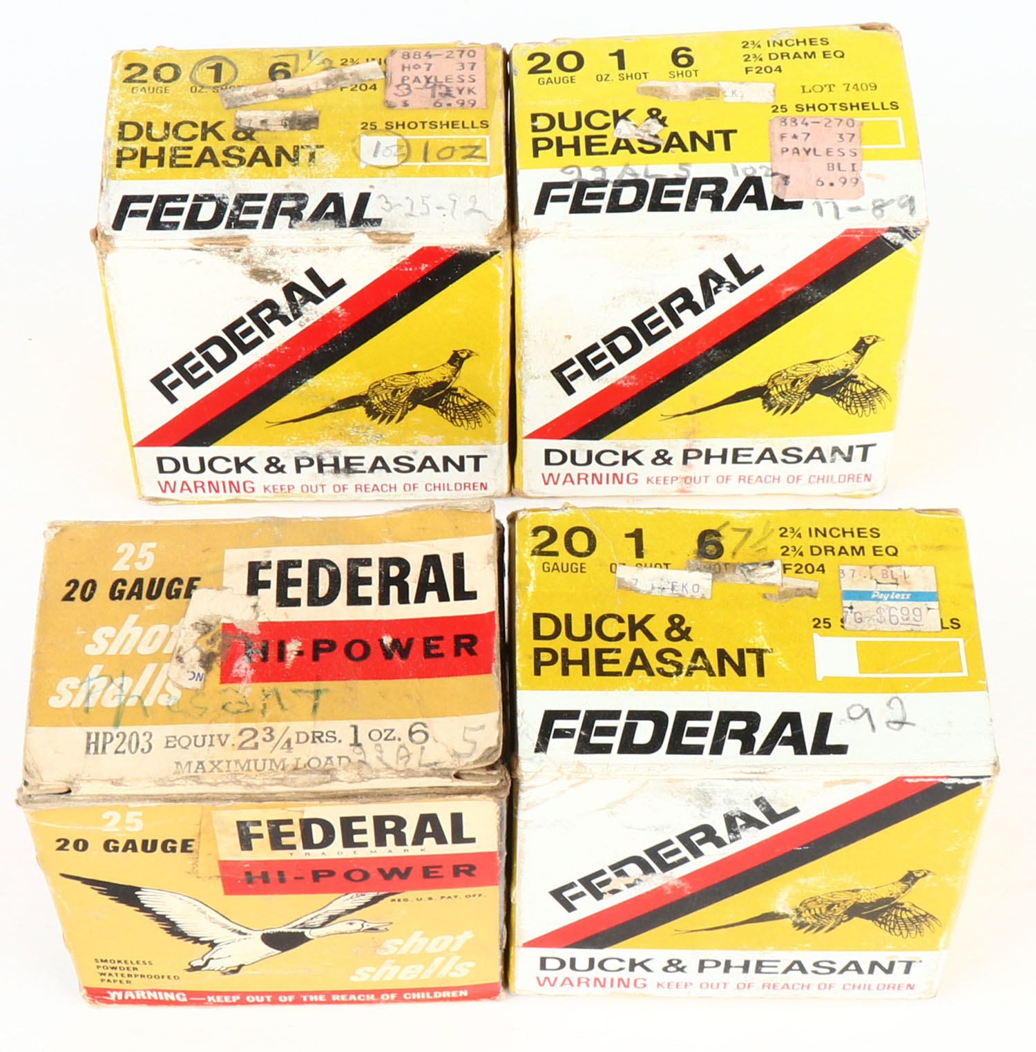 | Lot of 4 Federal, 20ga., Shot size 6, Appears Full, Shotshell bo...