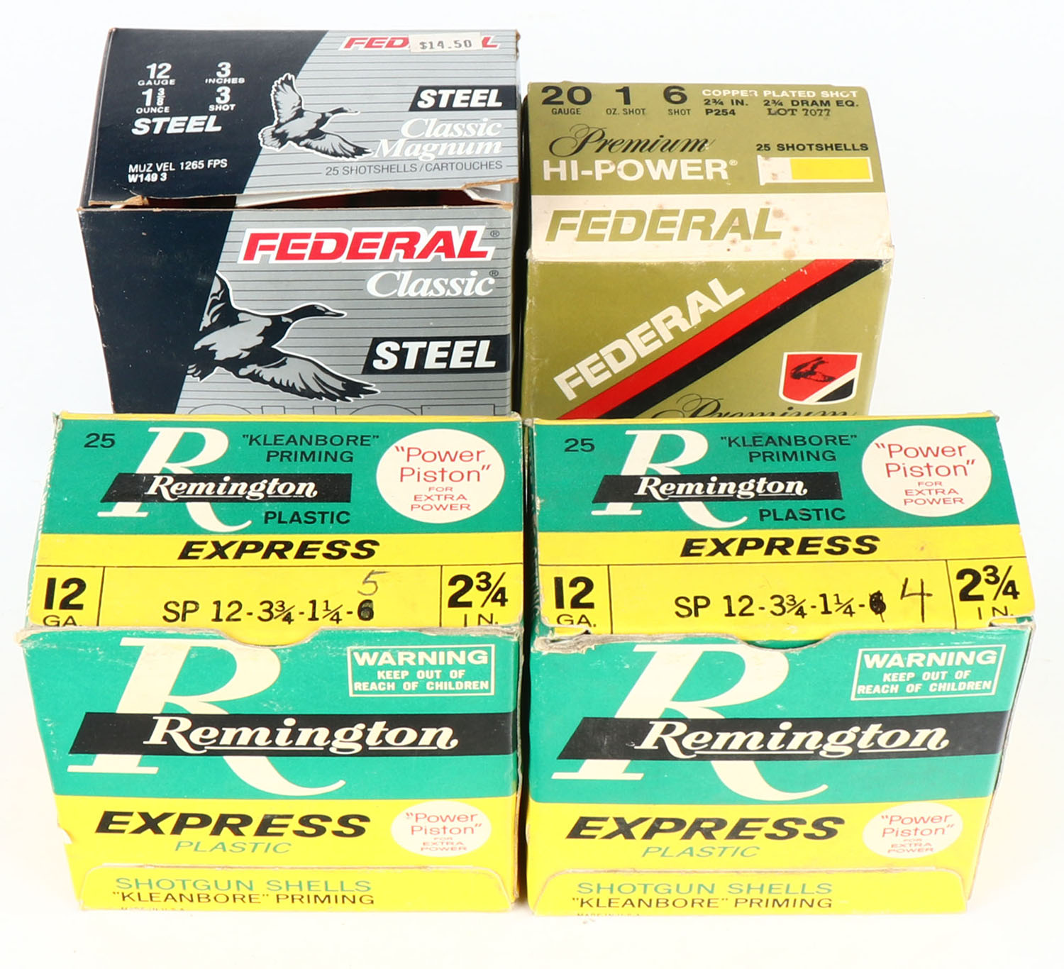 Lot of 4, Mixed Manufacture, 12ga. & (1) 20ga., Appears Full, Shotshell Boxes. Grade: Very Good + - Value: 10 to 40