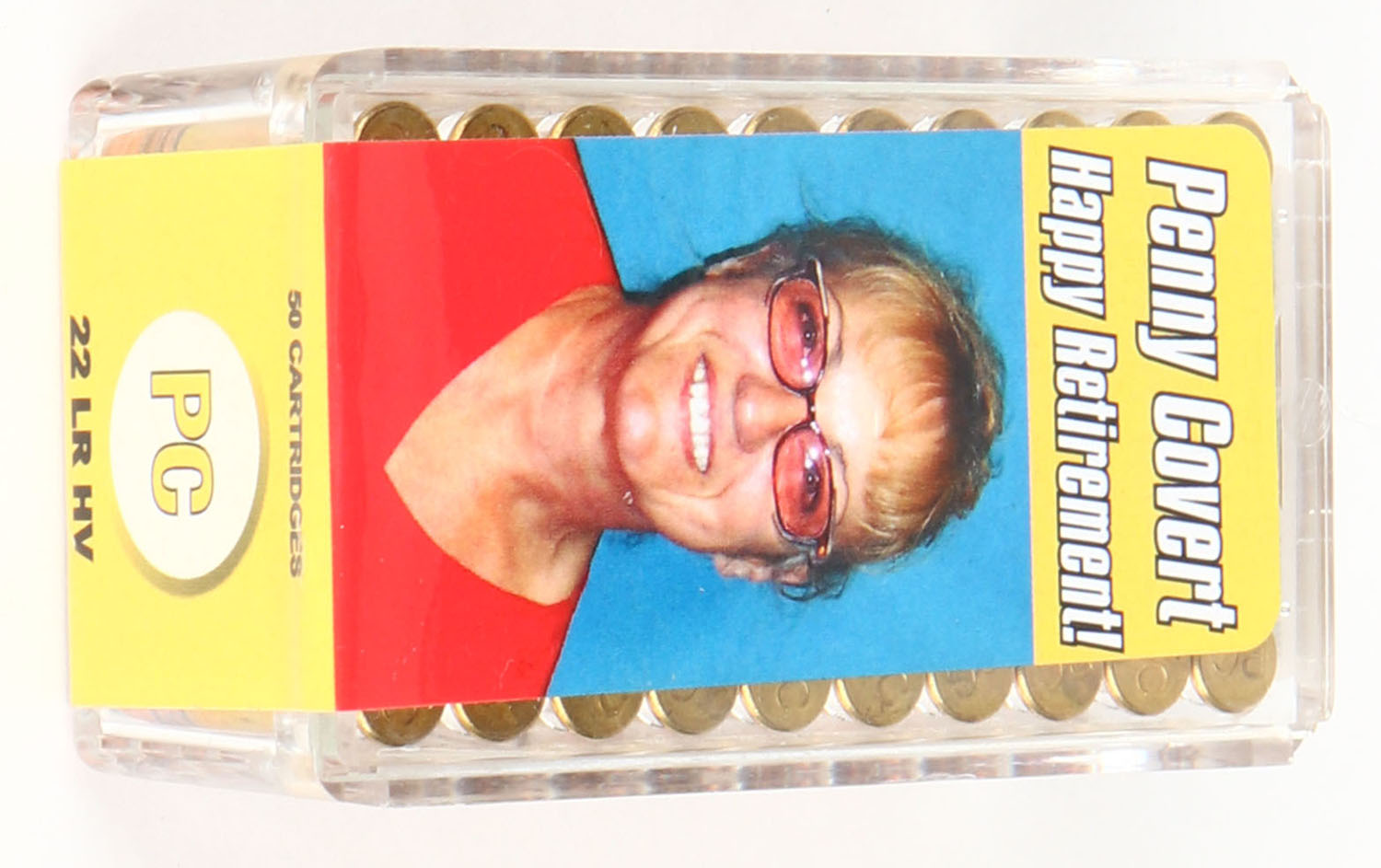 CCi, Penny Covert Retirement Commemorative box, .22 Long Rifle, High Velocity, FULL & SEALED, 2pc. Clear plastic tray with multi-colored sealing label featuring Penny herself, box is near mint with minty color, only one small crack on box, label is intact, ammo appears minty. Grade: Excellent ++ - Value: 80 to 120