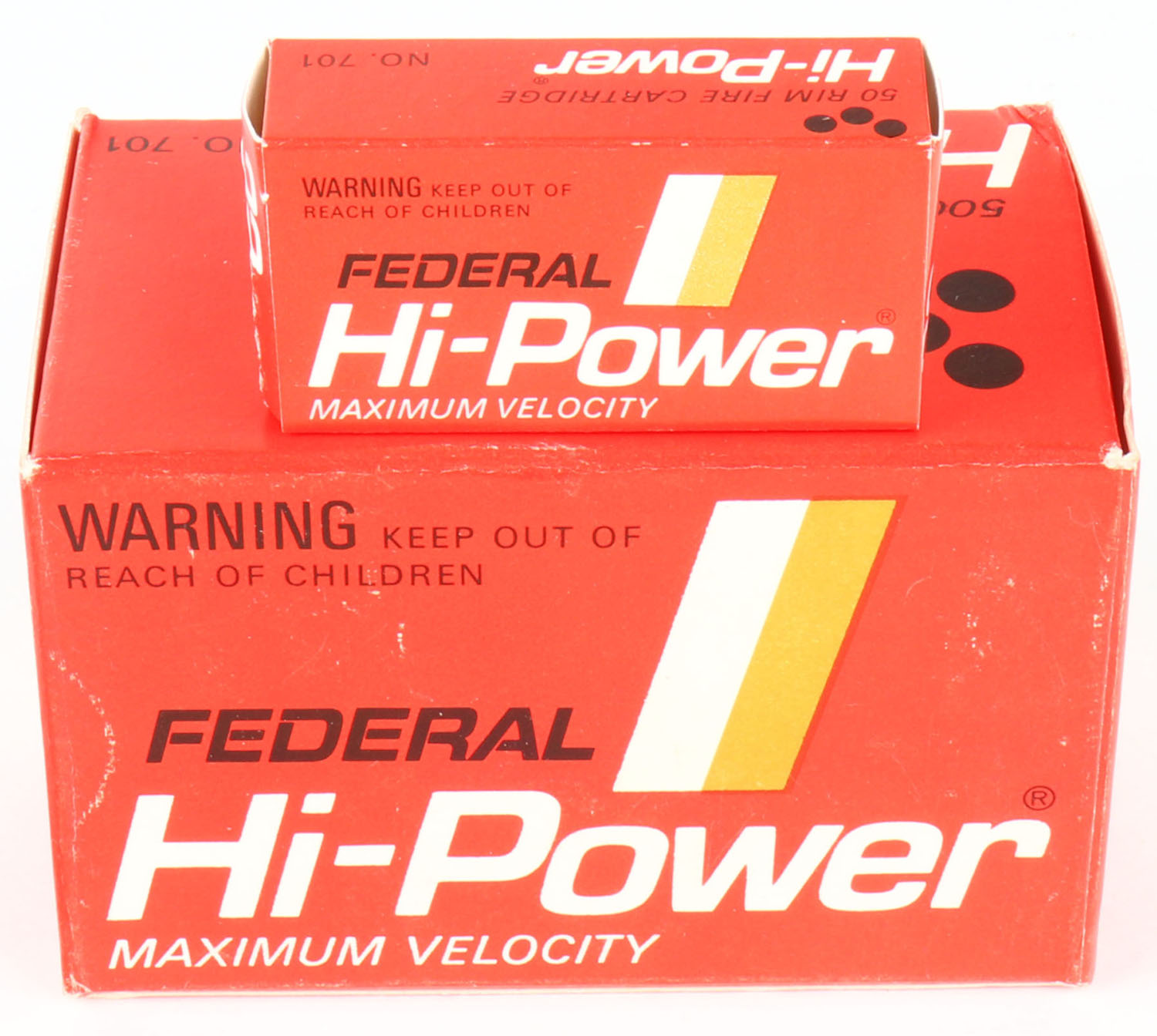 Federal, Hi-Power, .22 Short, No. 701, Full, 500rds. 1pc. Red white & black box, box is near mint with minty color, only very minor corner wear, edges are mostly crisp, end flaps are solid, inside boxes are minty. Grade: Excellent + - Value: 60 to 90