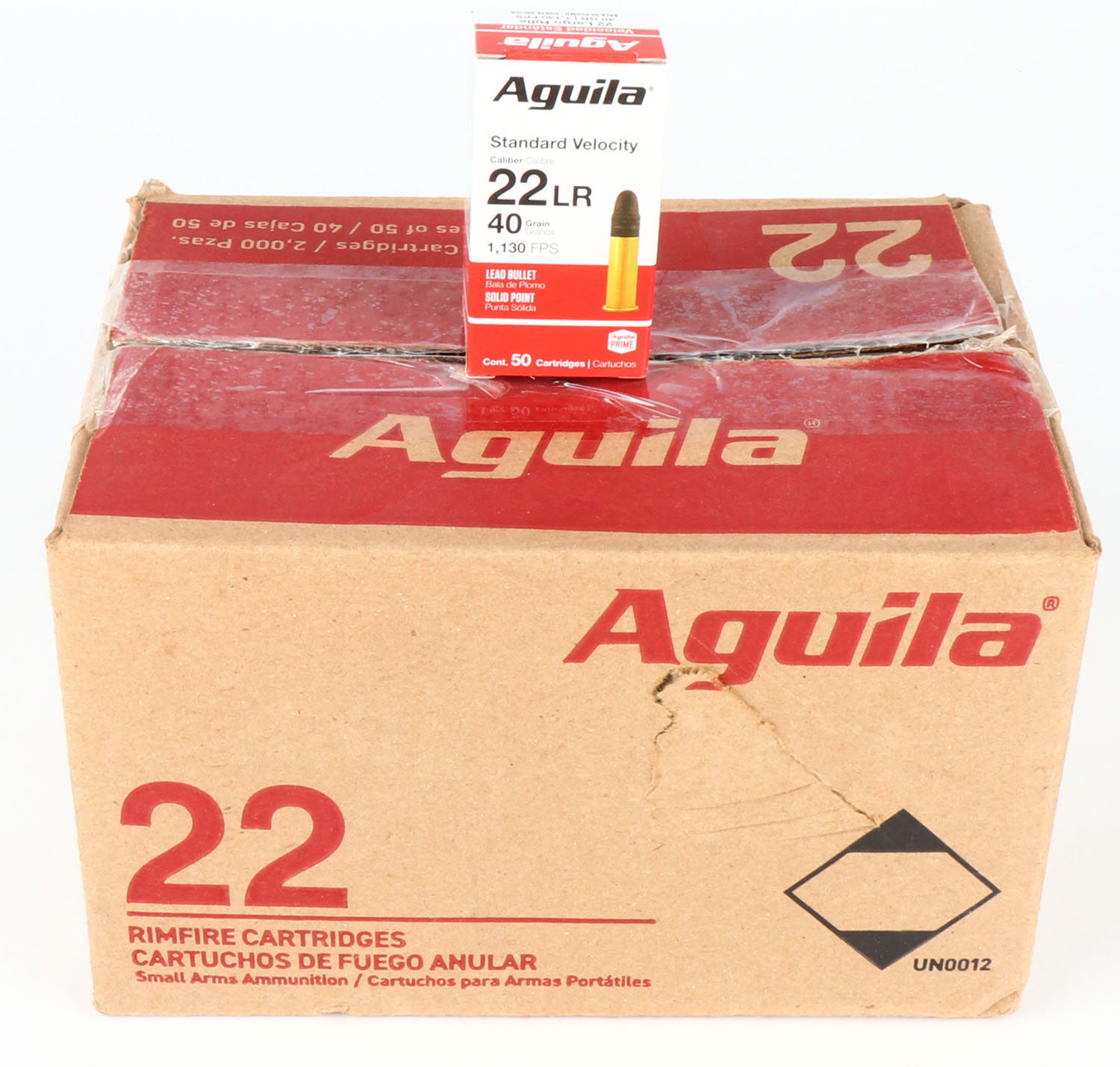 Aguila, Standard Velocity, .22 Long Rifle, 40 Grain Solid Point, 1130 FPS, Full Case, 2,000rds., case is solid, inside boxes are mint. Grade: MINT - Value: 120 to 180