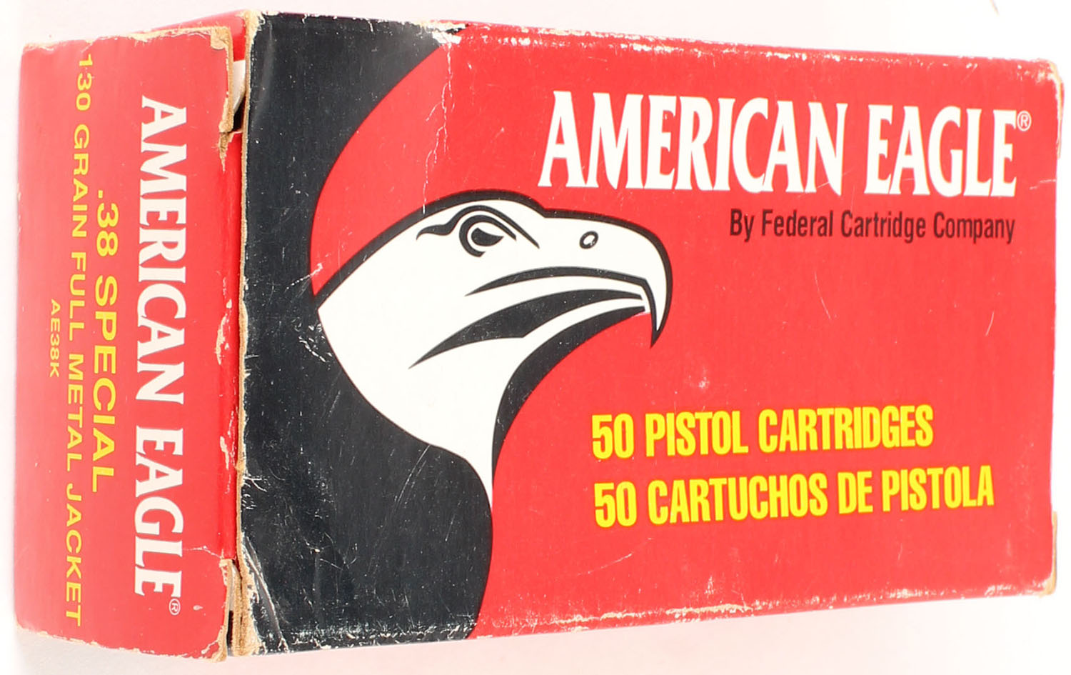Federal, American Eagle, 38 Special, 130 Grain FMJ, Full, 1pc. Multi-colored box, box has light edge wear, end flaps are solid, ammo is very good. Grade: Very Good - Value: 16 to 24