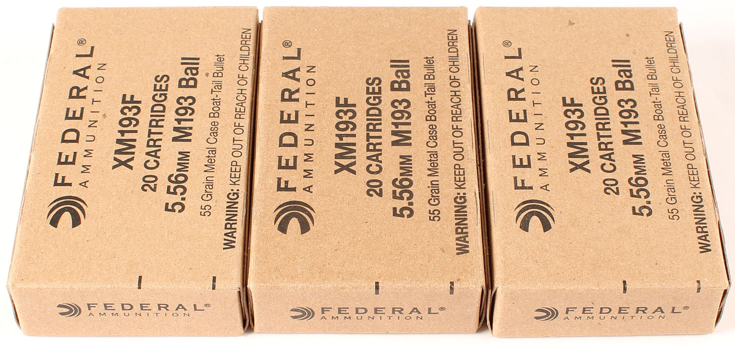 | Federal, Lot of (3), 5.56mm M193 Ball, 55 Grain Metal Case Boat-...