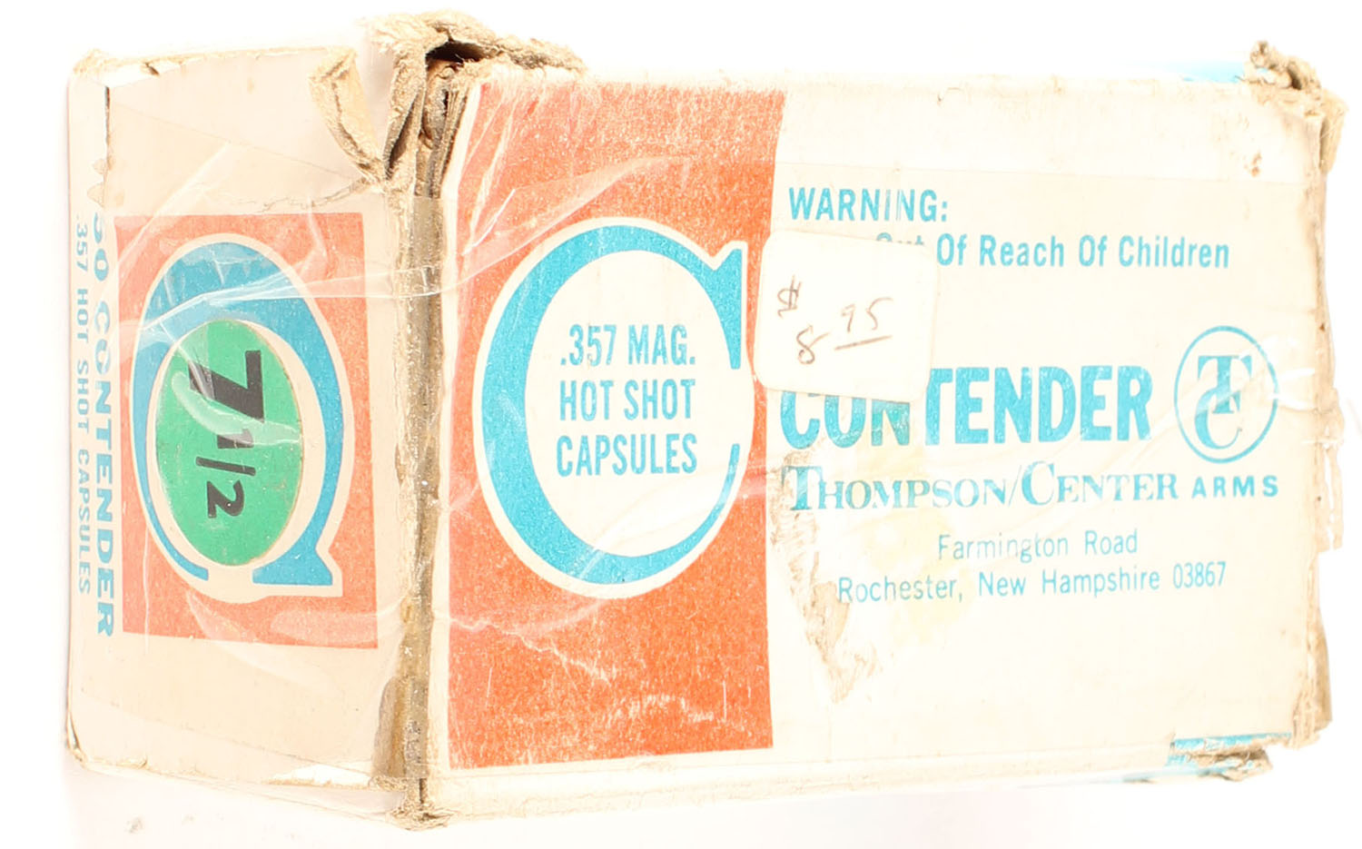 Thompson Center Arms, Contender, .357 Hot Shot Capsules, 1pc, Partial 47rds, multi-colored box, box has tape repairs, ammo is good. Grade: Good ++ - Value: 12 to 18
