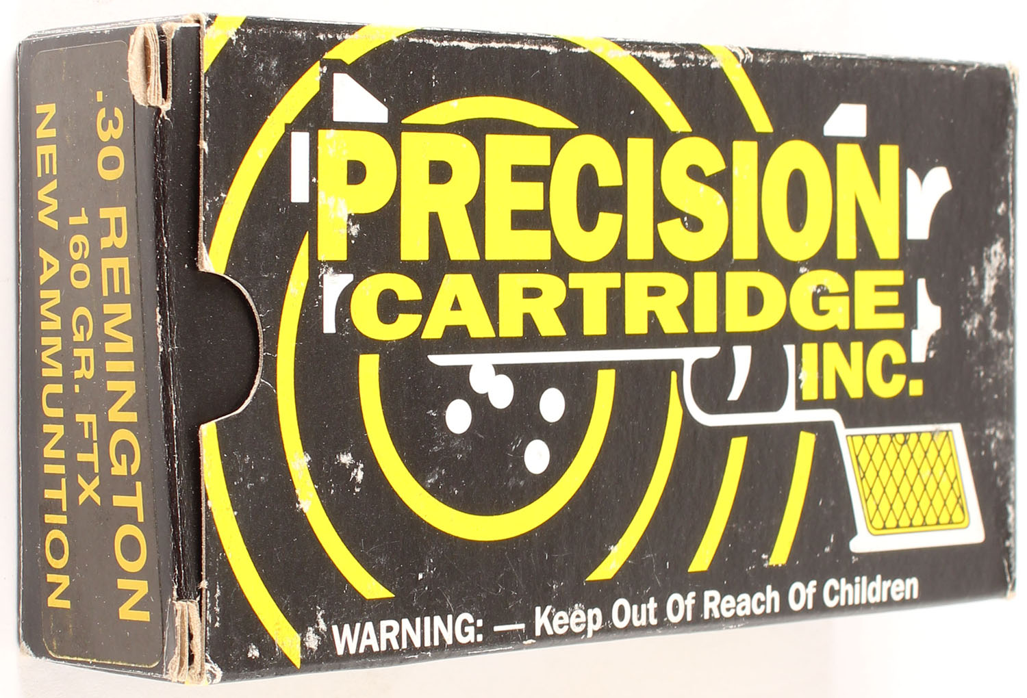 Precision Cartridge Inc. .30 Rem. 160 Gr. FTX, Partial 12rds, 1pc., multi-colored box, box has edge wear with scuffing, ammo is excellent. Grade: Very Good ++ - Value: 16 to 24
